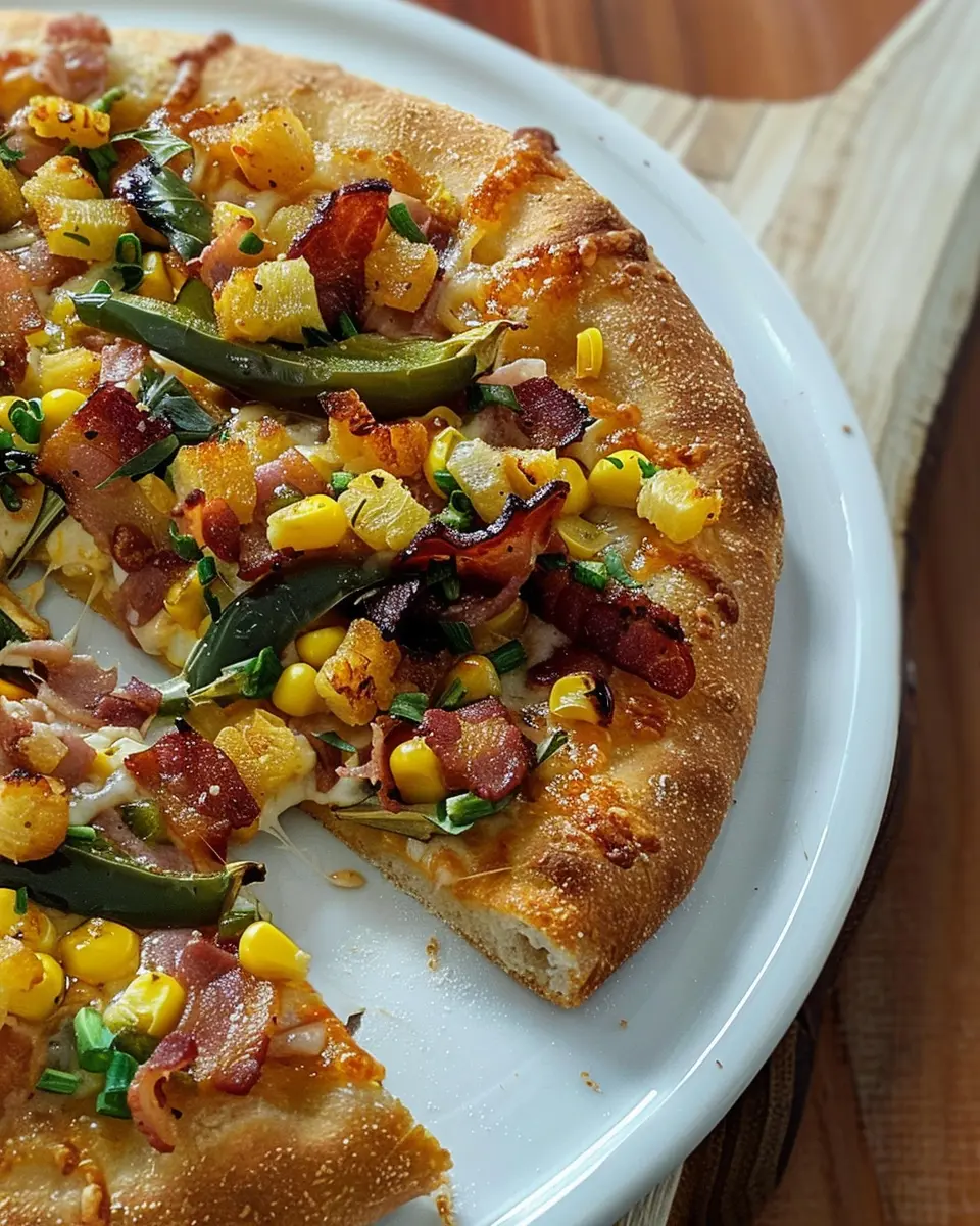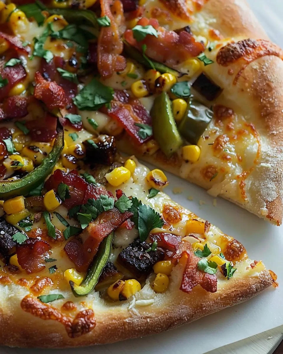 Nutritious Ingredients: With a balanced mix of protein from Turkey Bacon and fiber from corn and poblano peppers, this pizza is more than just a guilty pleasure. You’re getting essential nutrients while indulging in something truly scrumptious. Studies show that incorporating colorful vegetables into your meals can reduce health risks and keep you feeling energized—who wouldn’t want that?