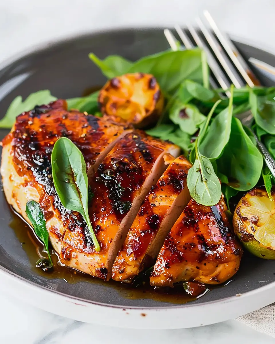 Now you can slice and serve your delicious Baked Balsamic Chicken Breast. Pair it with a side of roasted veggies or a crisp salad to create a balanced meal. Your taste buds will thank you!