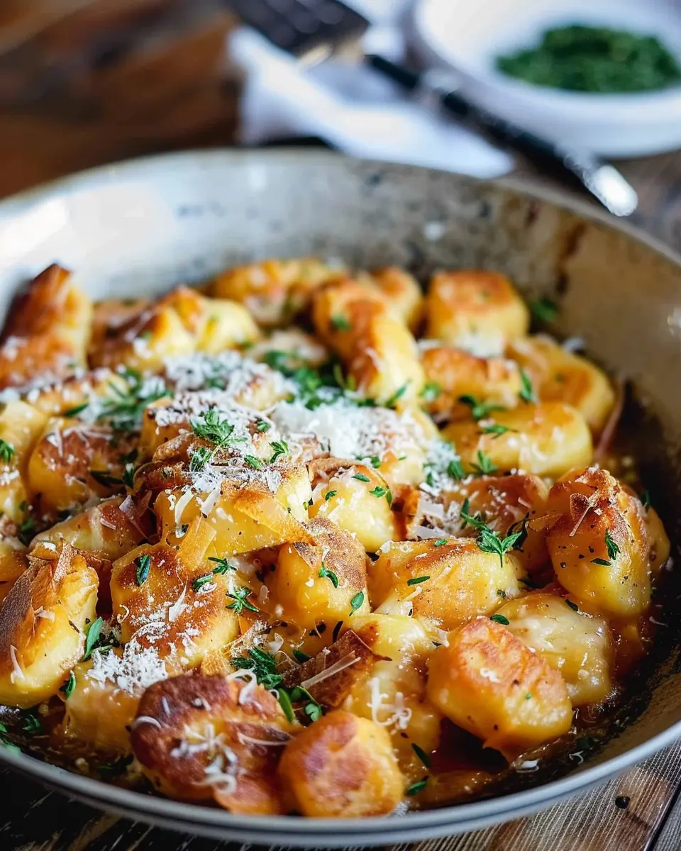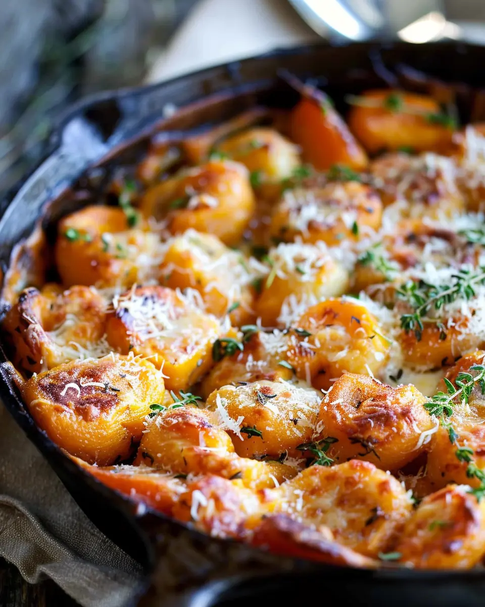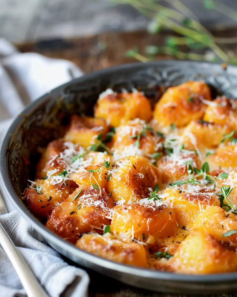 Baked Pumpkin Gnocchi with Thyme and Parmesan is a comforting dish that combines the sweetness of pumpkin with the savory notes of thyme and rich, melting cheese.