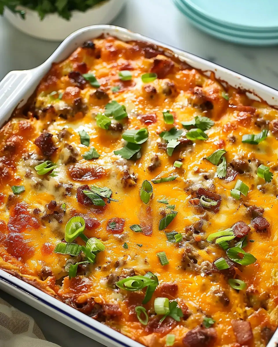 Top it off with shredded cheddar and a sprinkle of taco seasoning for that authentic southwest taste. This casserole is perfect for those who love a kick and is great to share with friends during weekend brunches. Pair it with some fresh salsa on the side for that extra zing!