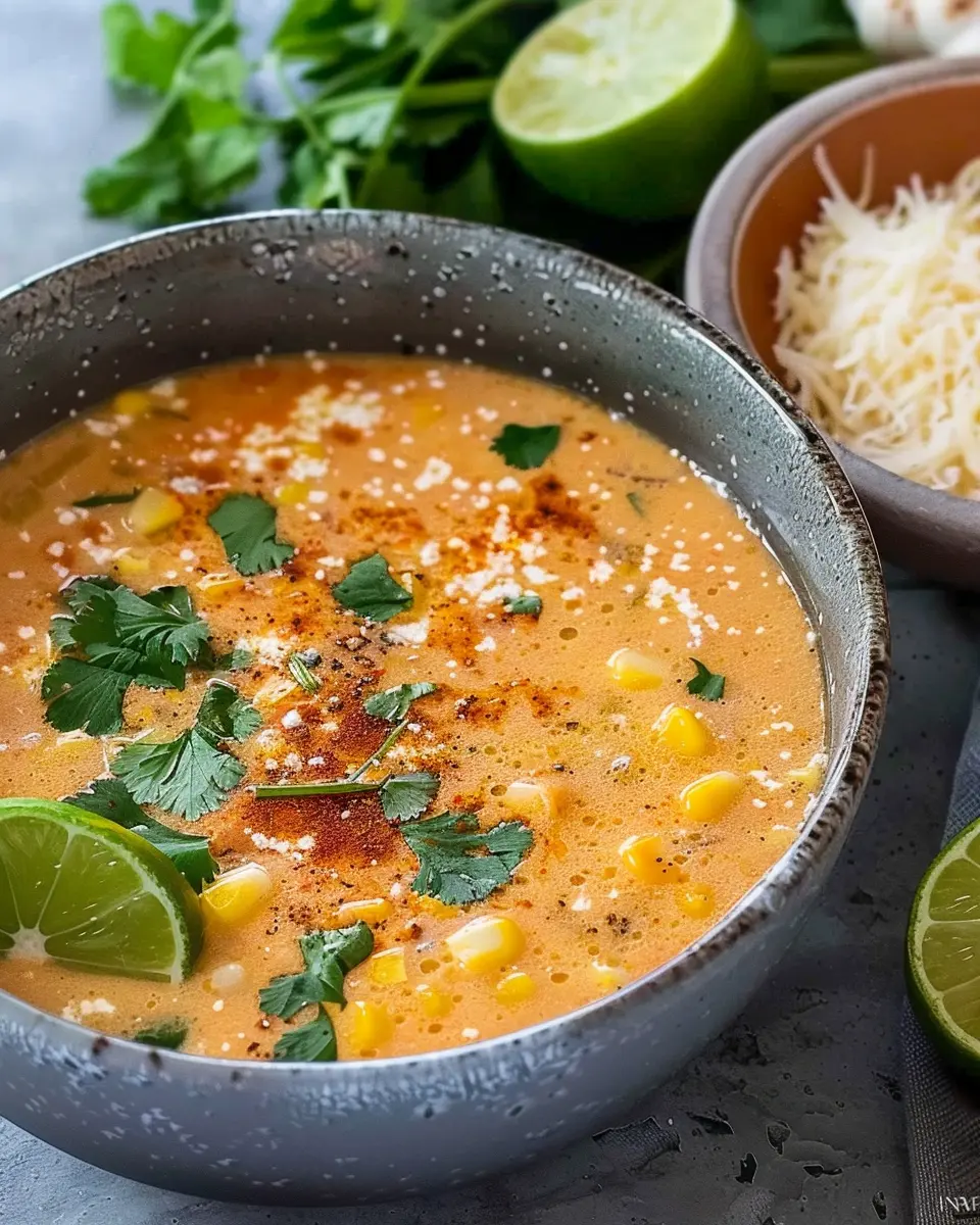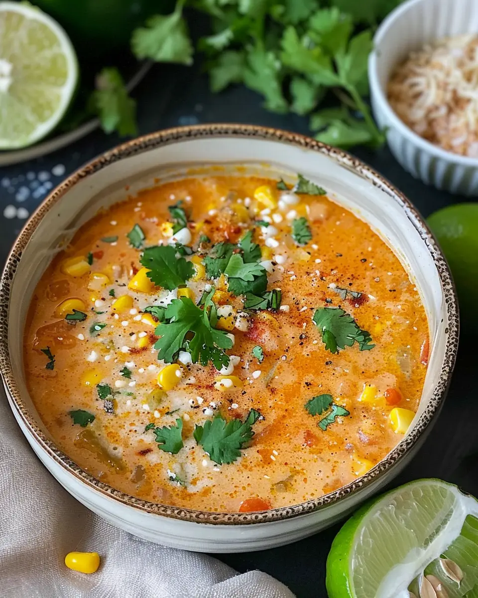 In conclusion, the Best Mexican Street Corn Soup Recipe is not just a dish; it embodies vibrant flavors and comforting warmth. Whether you’re hosting a casual dinner or simply craving a delightful bowl of goodness, this soup is perfect. With its blend of sweet corn, creamy textures, and hints of spice, it’s bound to impress friends and family alike. Plus, it’s versatile—you can easily adjust ingredients to fit dietary preferences. So next time you’re in the mood for something special, reach for this recipe, and enjoy a delicious taste of Mexico right at home. Happy cooking! For further inspiration, check out Serious Eats and Food Network for more culinary adventures.