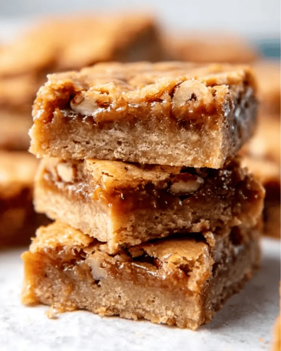 Balanced Indulgence: Blondies are less fussy than traditional brownies, with a rich buttery flavor that pairs beautifully with pecans and caramel. The chewy texture combined with the sweet, nutty topping makes each bite feel special.