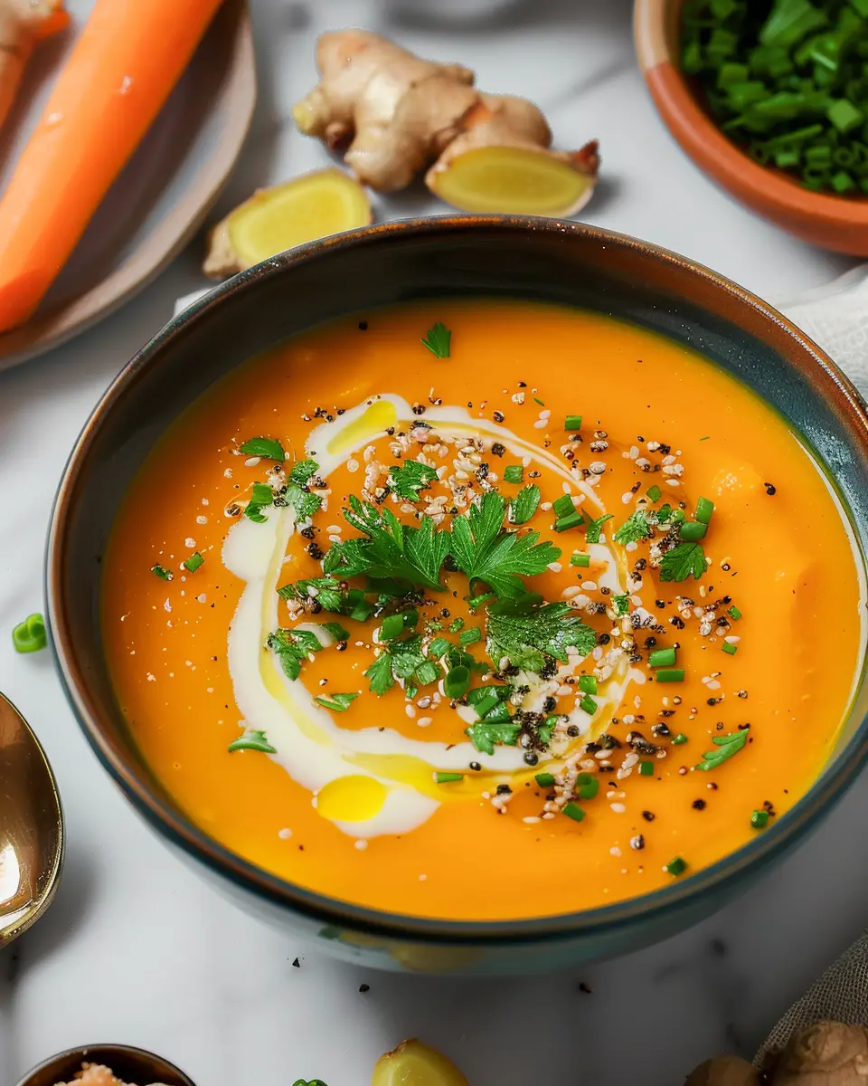A simple garnish can transform your dish. Consider topping your carrot and ginger soup with: