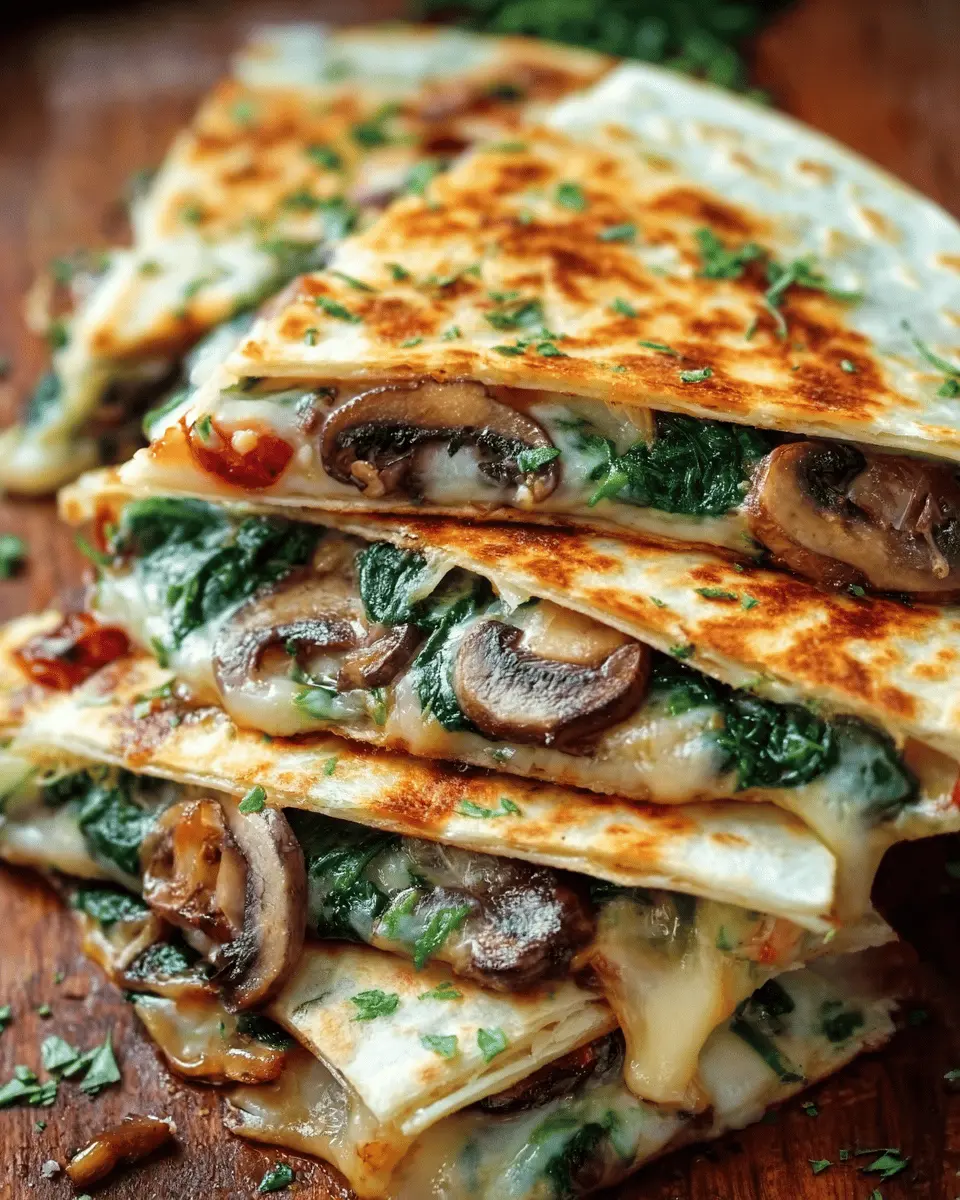 PrintCheesy Baked Spinach Mushroom Quesadillas for Easy Comfort Food