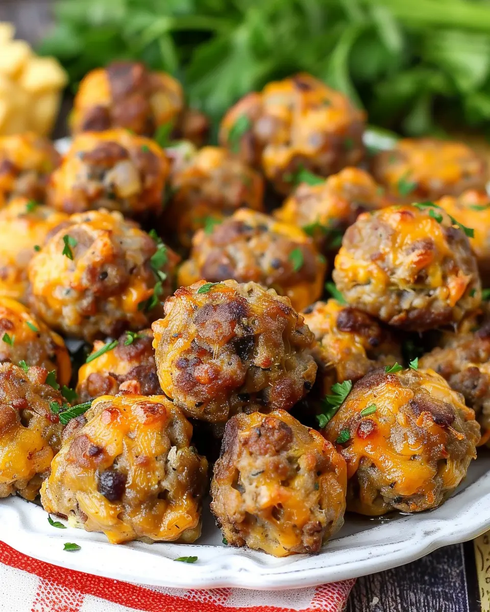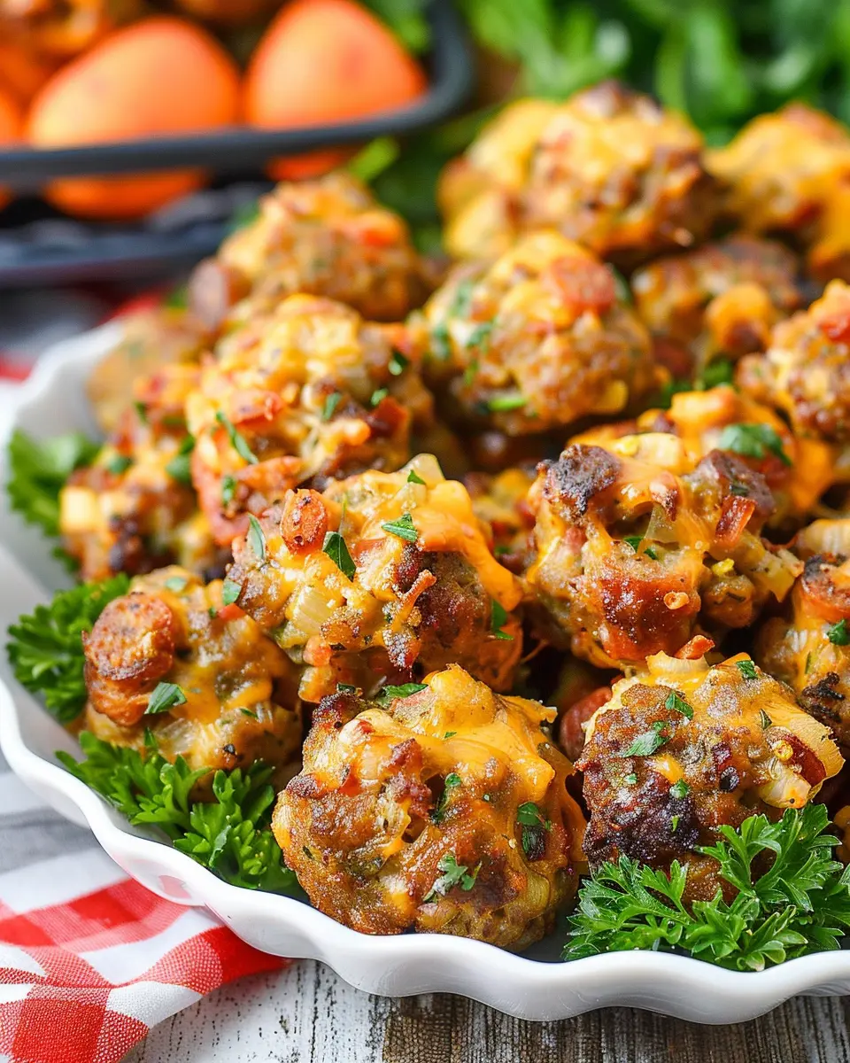 Enjoy the rich flavors of Cheesy Sausage Stuffing Balls, perfect for a cozy meal.