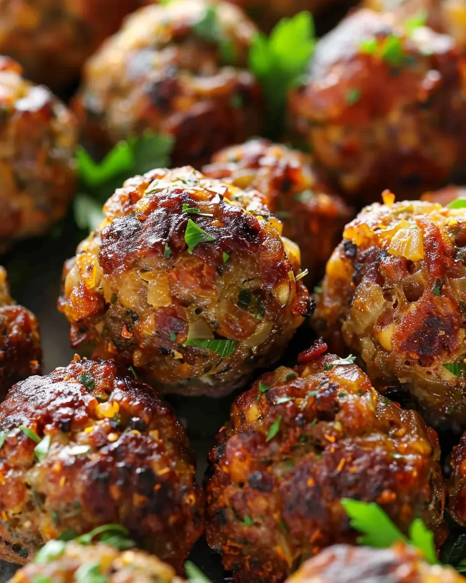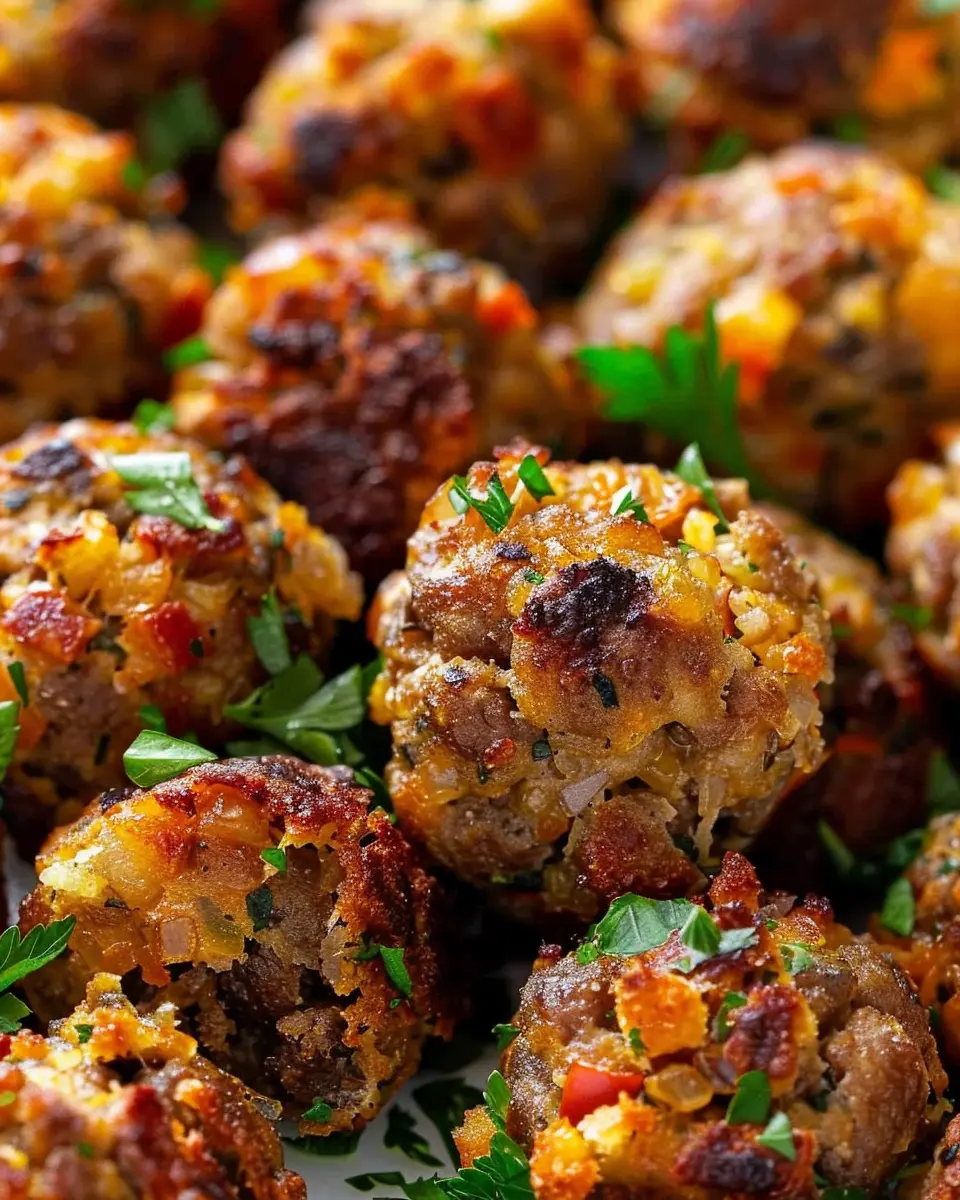 These Cheesy Sausage Stuffing Balls are the ultimate comfort food, perfect for holiday gatherings or family dinners.