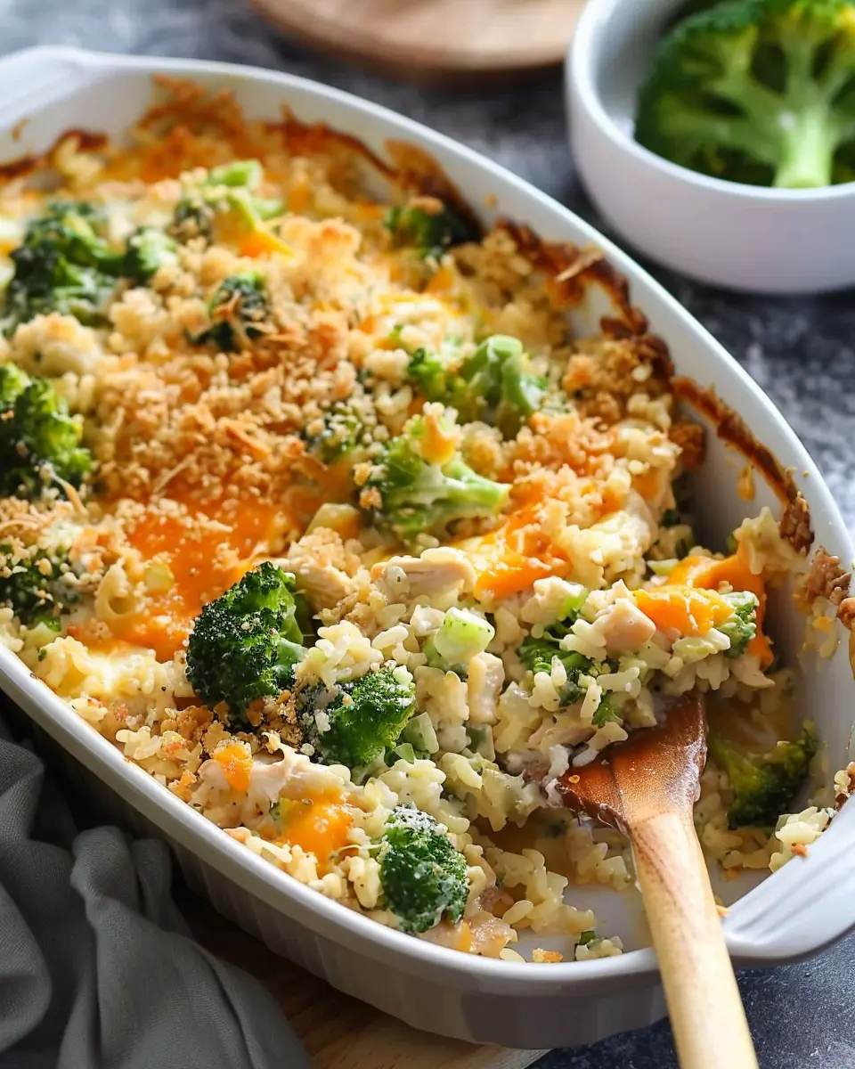 This Chicken Broccoli Rice Casserole is the perfect comfort food for any occasion, combining tender chicken, vibrant broccoli, and fluffy rice into one delicious dish.