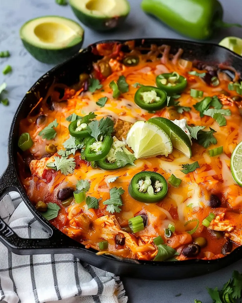 In summary, the chicken enchilada skillet is not just a meal; it’s an experience that brings warmth and comfort to your dinner table. With its vibrant layers of flavor and all-in-one convenience, it’s perfect for busy weeknights. You can easily customize it with your favorite toppings and sides—think fresh avocado or tangy sour cream—to add an extra dimension.