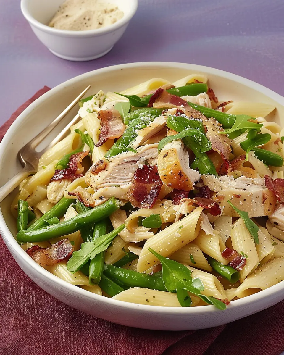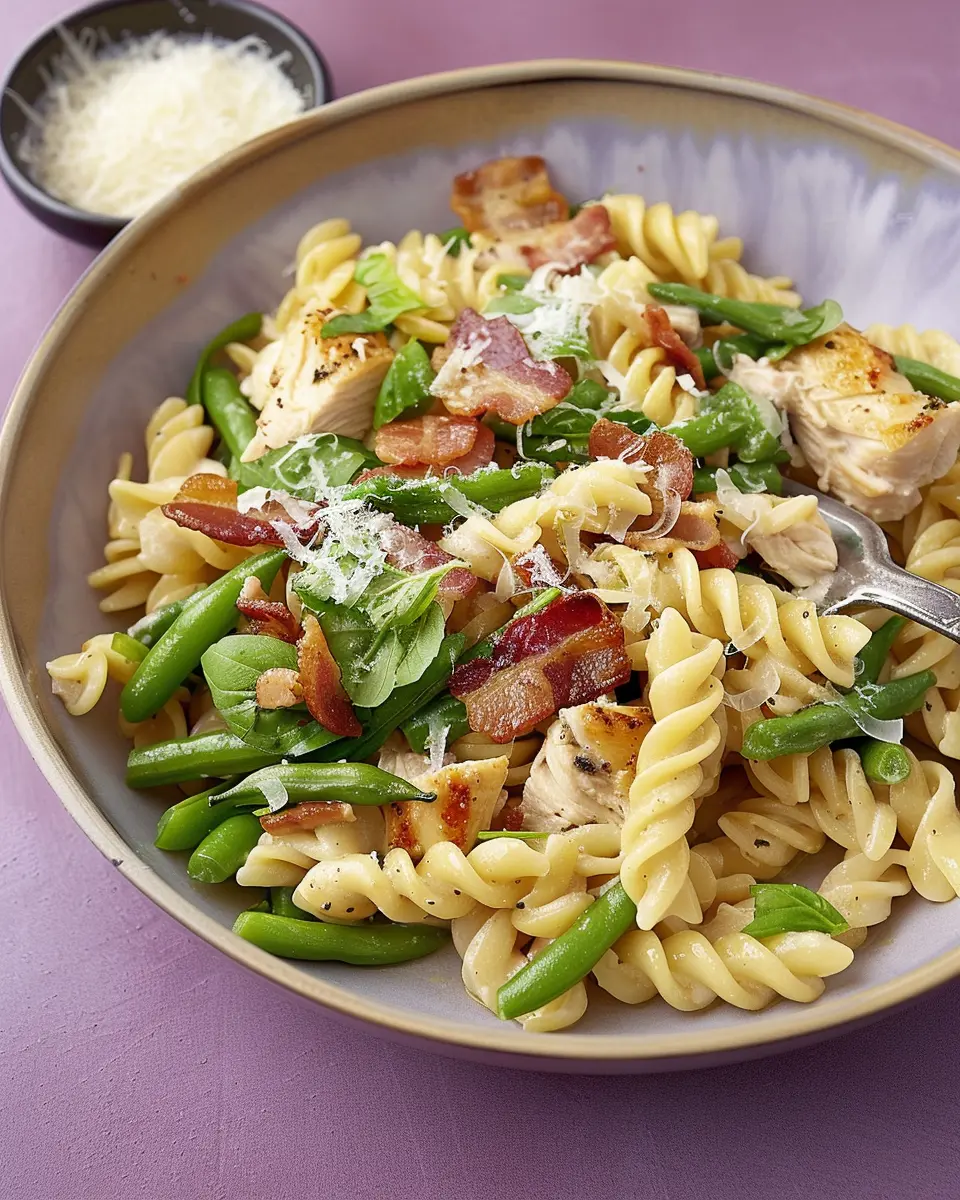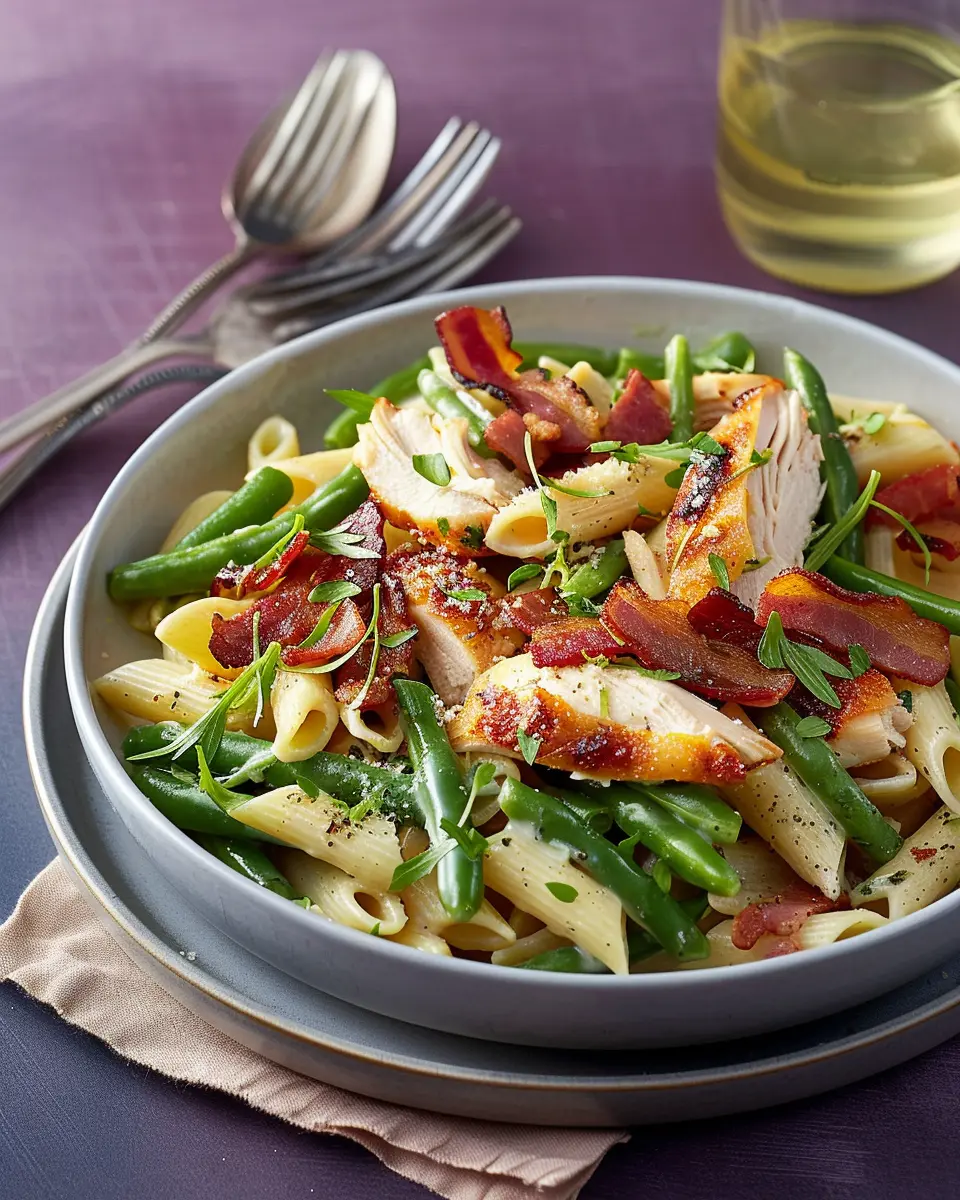 Chicken, Green Bean, and Bacon Pasta is a delightful blend of flavors perfect for any family dinner.