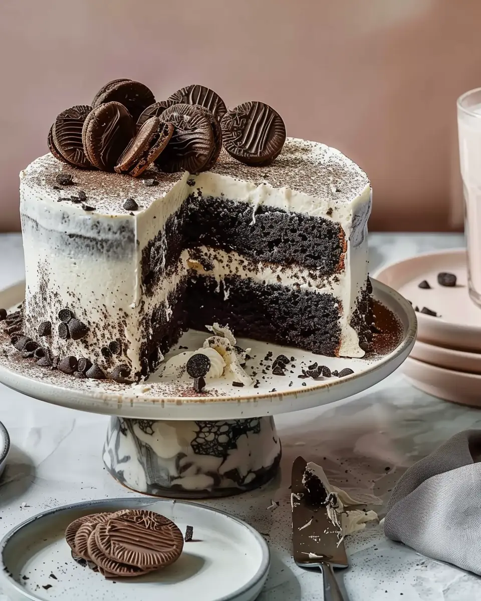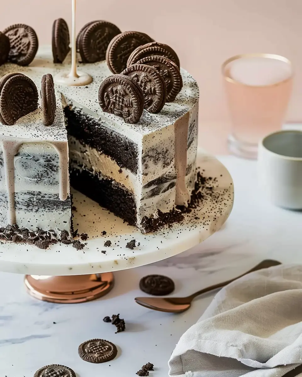 This Cookies And Cream Cake is an indulgent treat that combines rich chocolate and creamy vanilla flavors, perfect for any occasion.