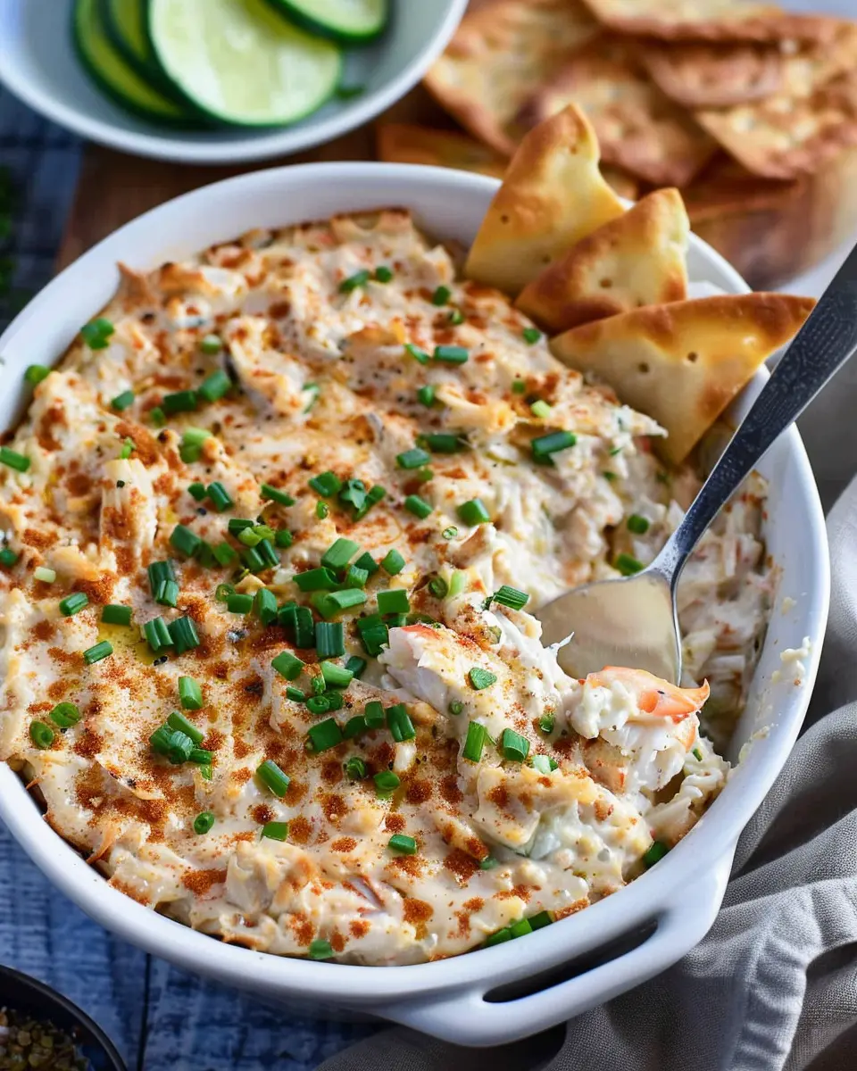 Make your presentation as enticing as the dip itself! Try placing it in a hollowed-out loaf of sourdough for a rustic look. You can even top your crab dip with a sprinkle of fresh herbs or a drizzle of lemon juice for that extra zing!