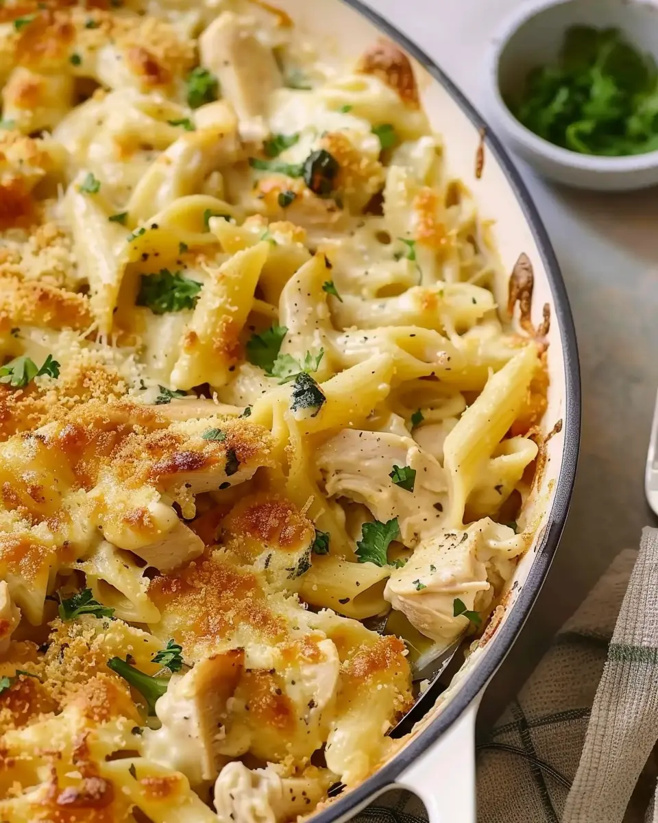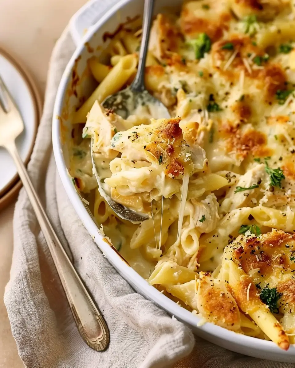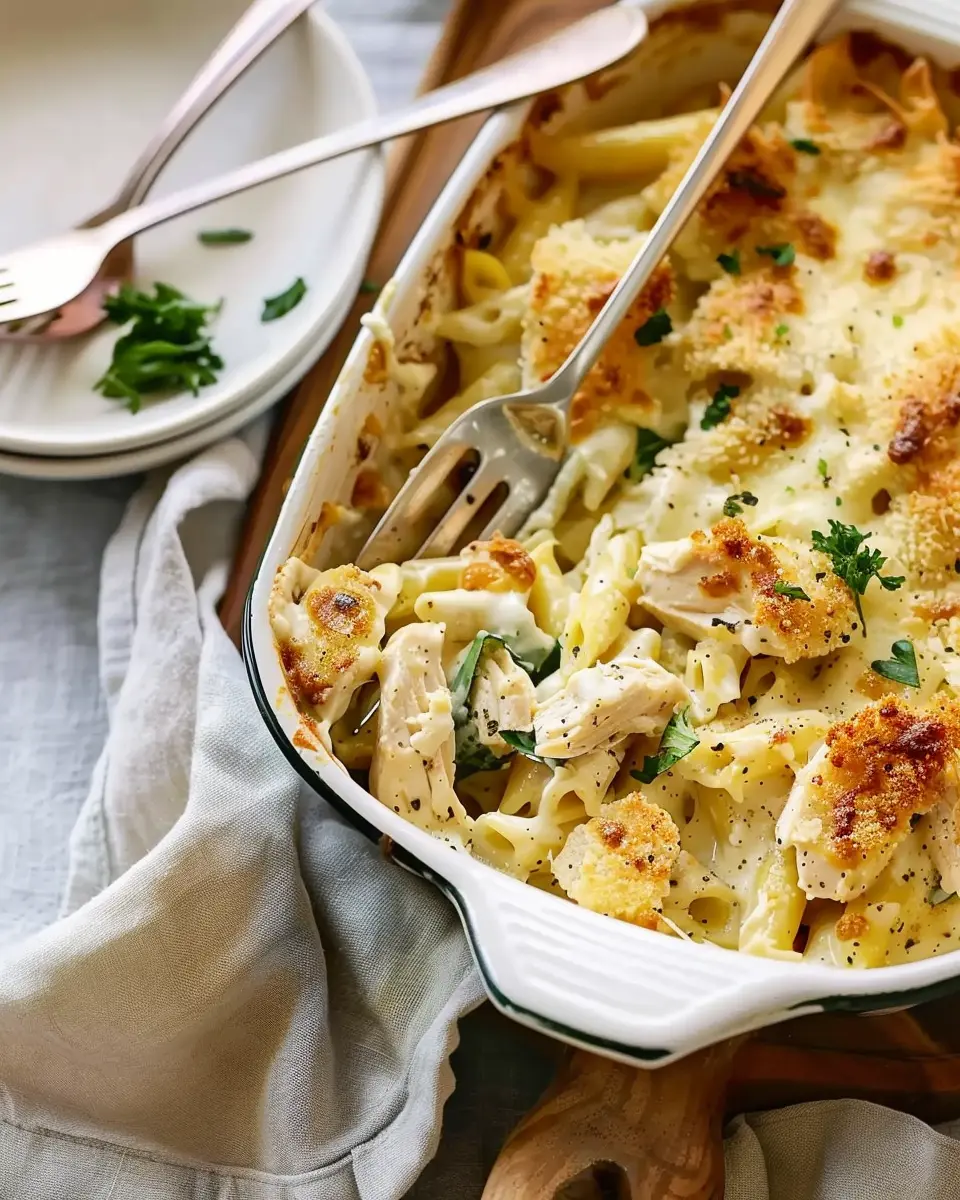 A rich and creamy chicken alfredo casserole that offers a perfect blend of comfort and indulgence.