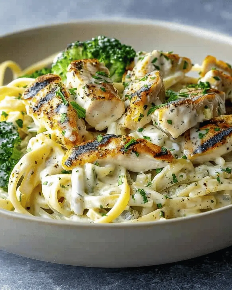 For a healthier version of creamy garlic chicken alfredo, try low-fat cream cheese or a splash of chicken broth combined with unsweetened almond milk. This keeps the creaminess while cutting calories.