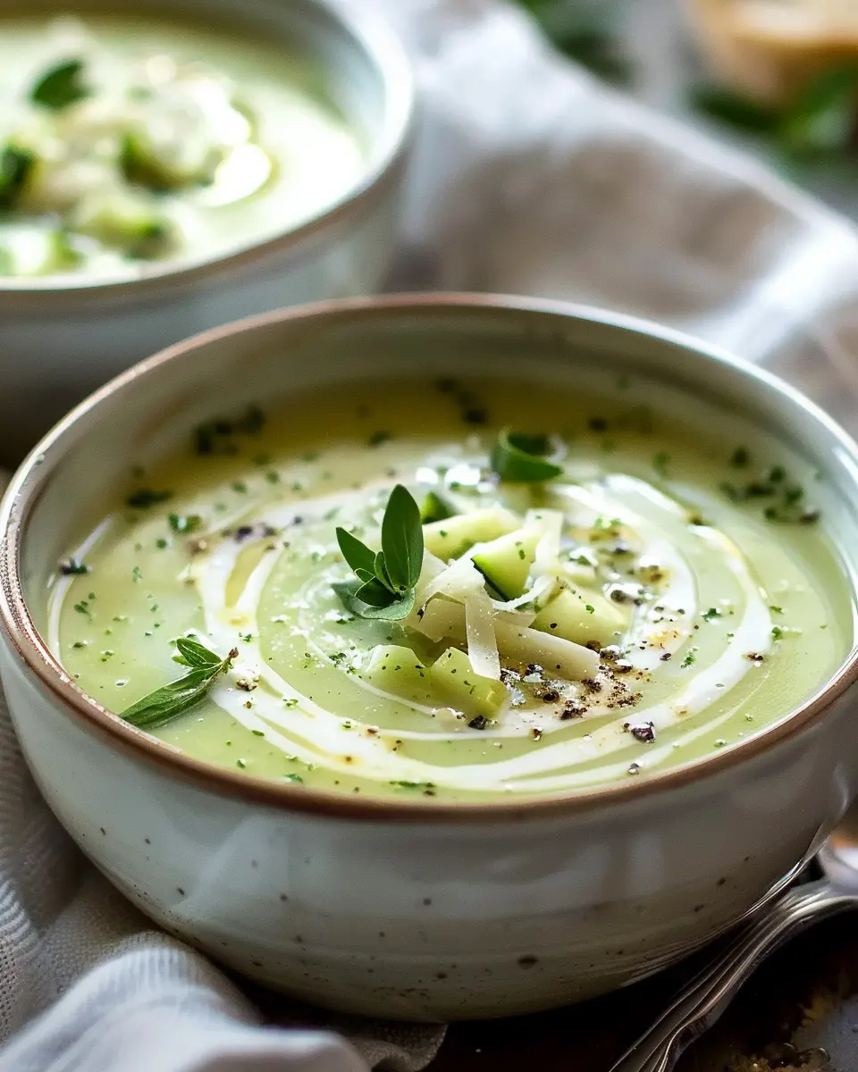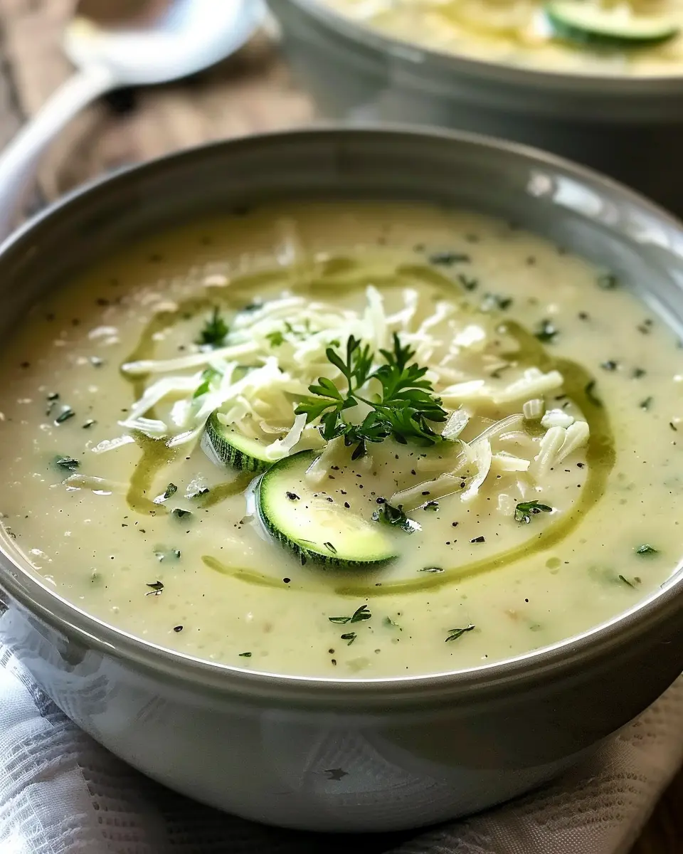 A deliciously creamy zucchini soup that is perfect for a comforting meal. This recipe highlights the fresh flavors of zucchini combined with simple ingredients.