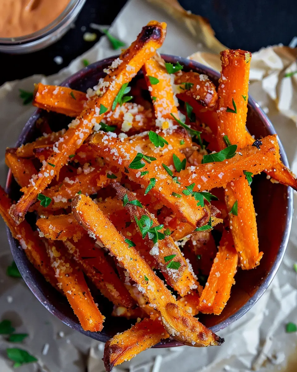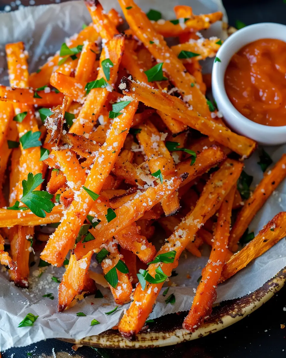 Finally, don’t forget to sprinkle the Parmesan cheese just before serving. This adds a delightful cheesy flavor that perfectly complements the sweetness of the carrots. Enjoy your fries as a guilt-free snack or a tasty side!