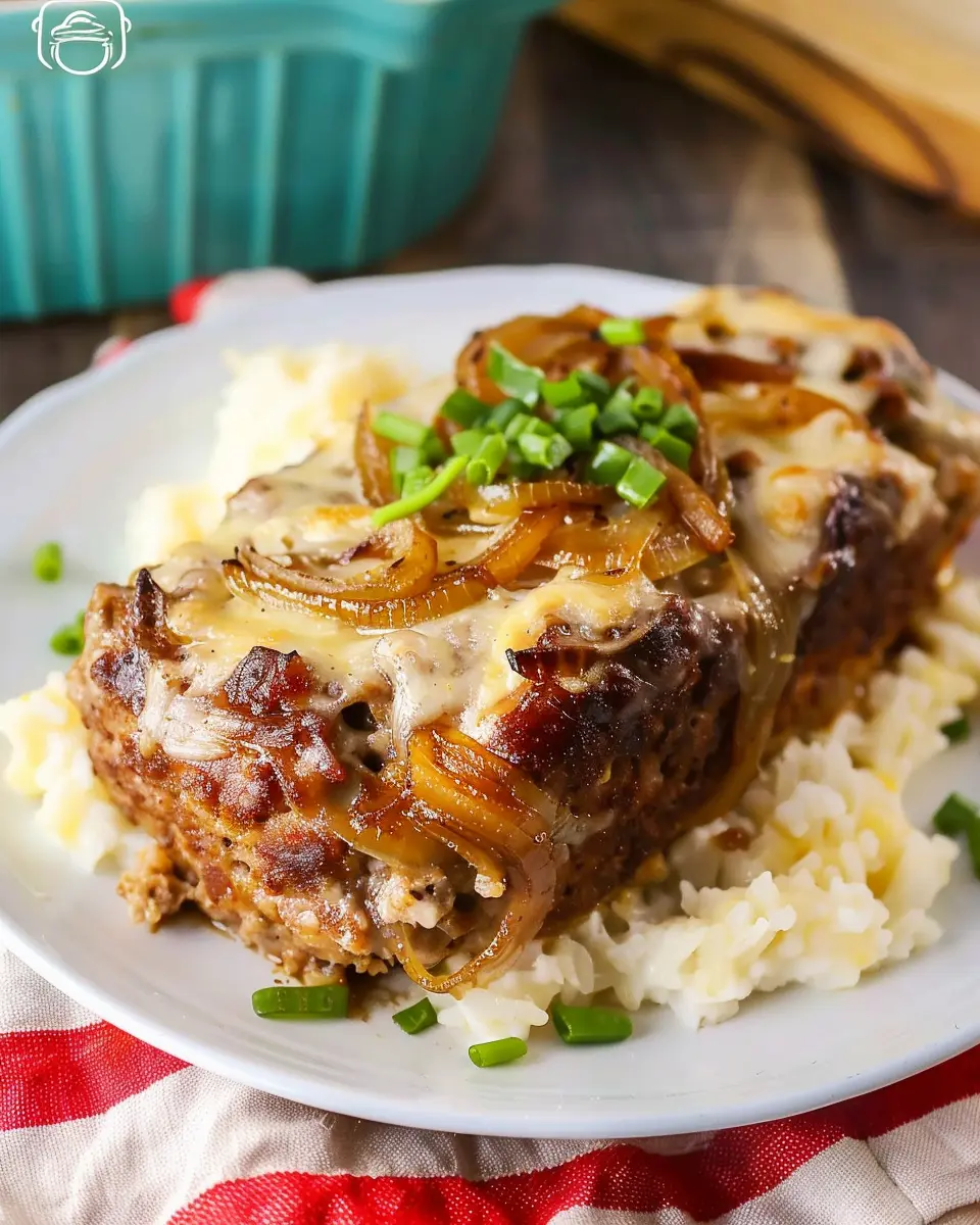 Once it’s done, let it rest for a few minutes before slicing—this helps keep the juices locked in. So there you have it! A comforting and satisfying Crock Pot French Onion Meatloaf ready to be served. Pair it with a side salad or roasted veggies for a complete meal that’s sure to impress even on the busiest of nights. Enjoy!