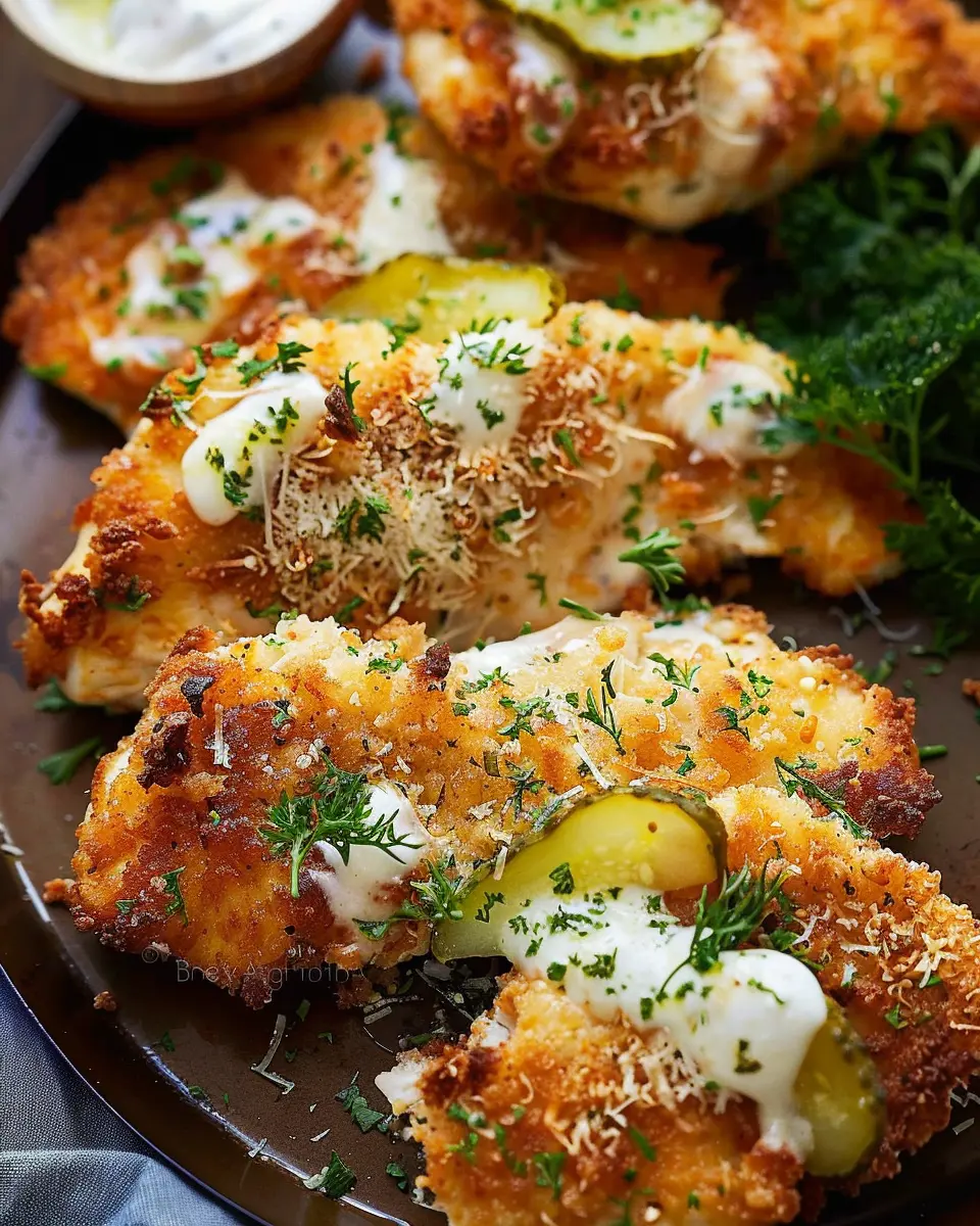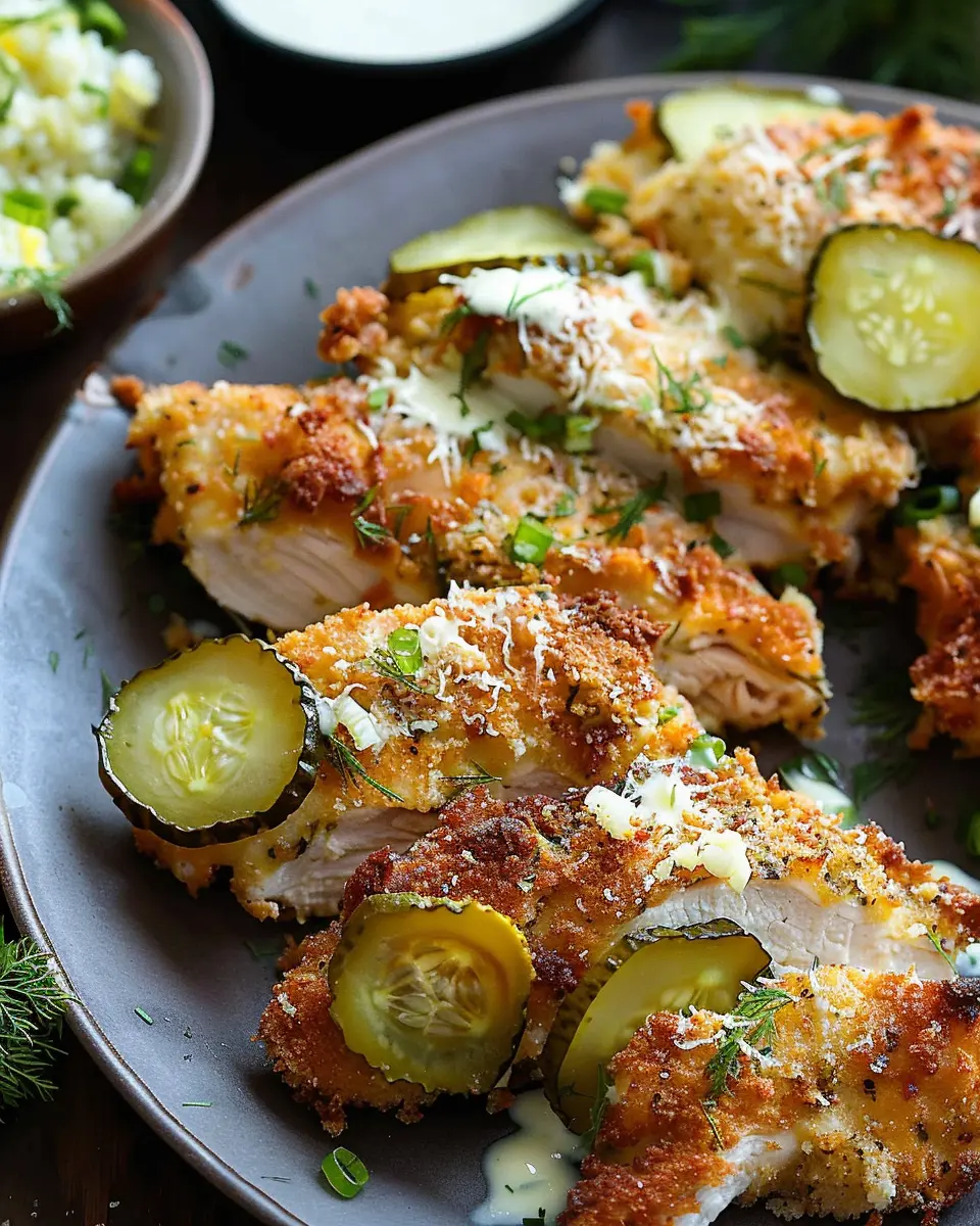 With each bite, you’ll experience a delightful crunch coupled with the unique tanginess of pickles. Serve your chicken with a light salad or some roasted potatoes, and you have a full meal ready to impress!
