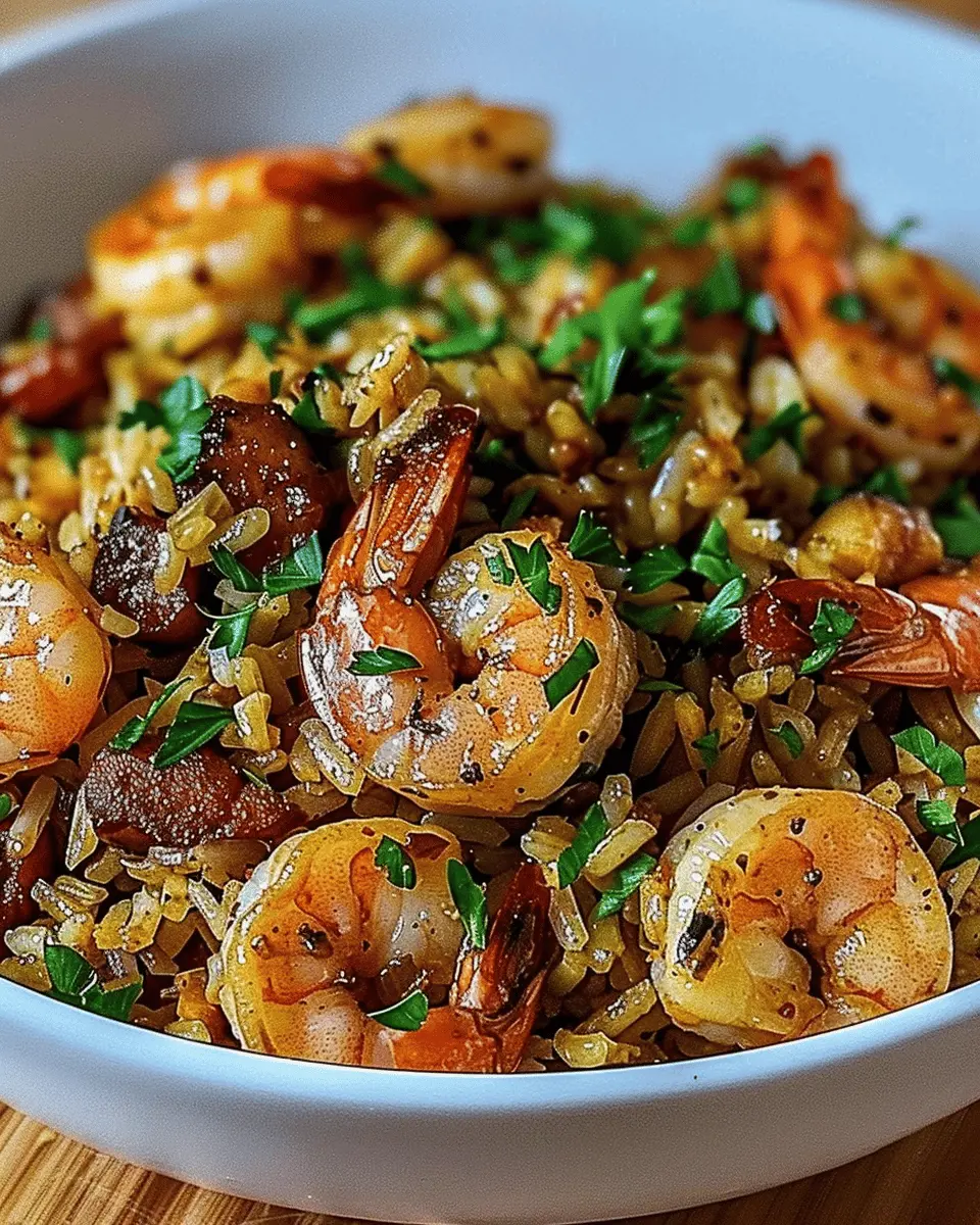 But it’s not just about being quick and easy. The flavors are everything! Imagine rich spices harmonizing with tender shrimp, complemented by savory ingredients like Turkey Bacon or Chicken Ham. According to health experts, shrimp is not just delicious but also high in protein and a good source of vitamins and minerals. Adding vegetables like bell peppers and onions will give you that extra nutritional boost you crave without sacrificing taste.