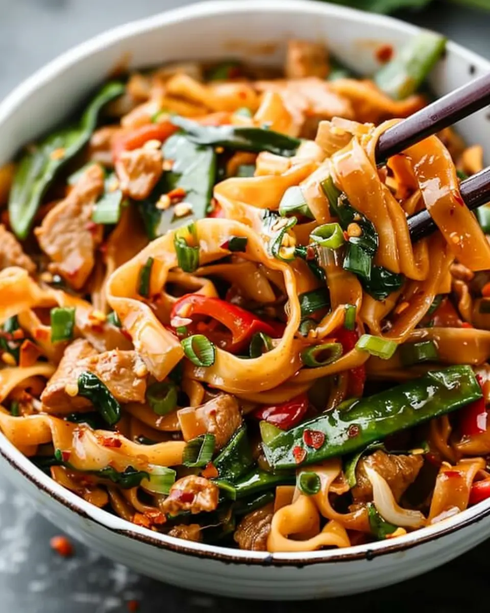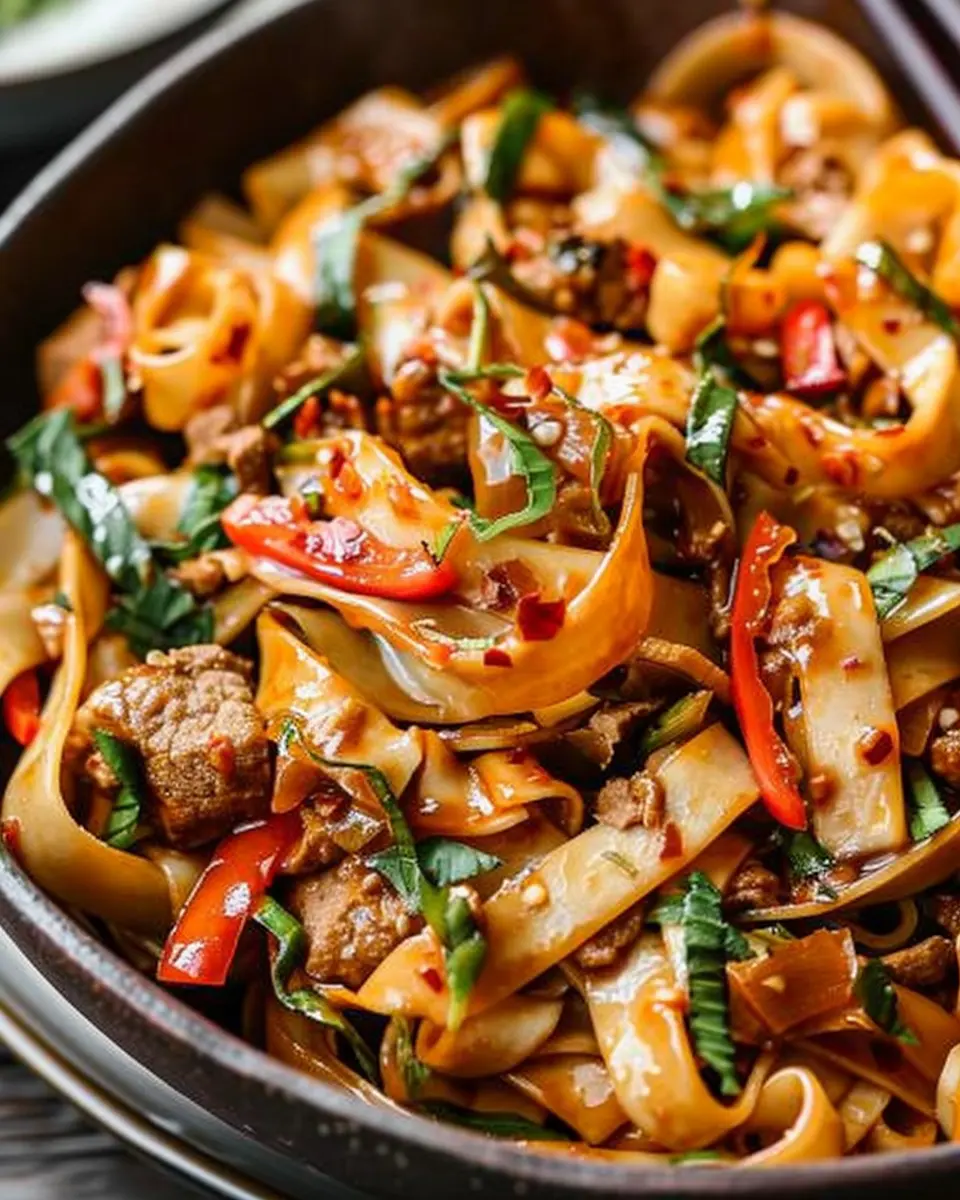 PrintDrunken Noodles: The Best Easy Recipe with Turkey Bacon and Beef