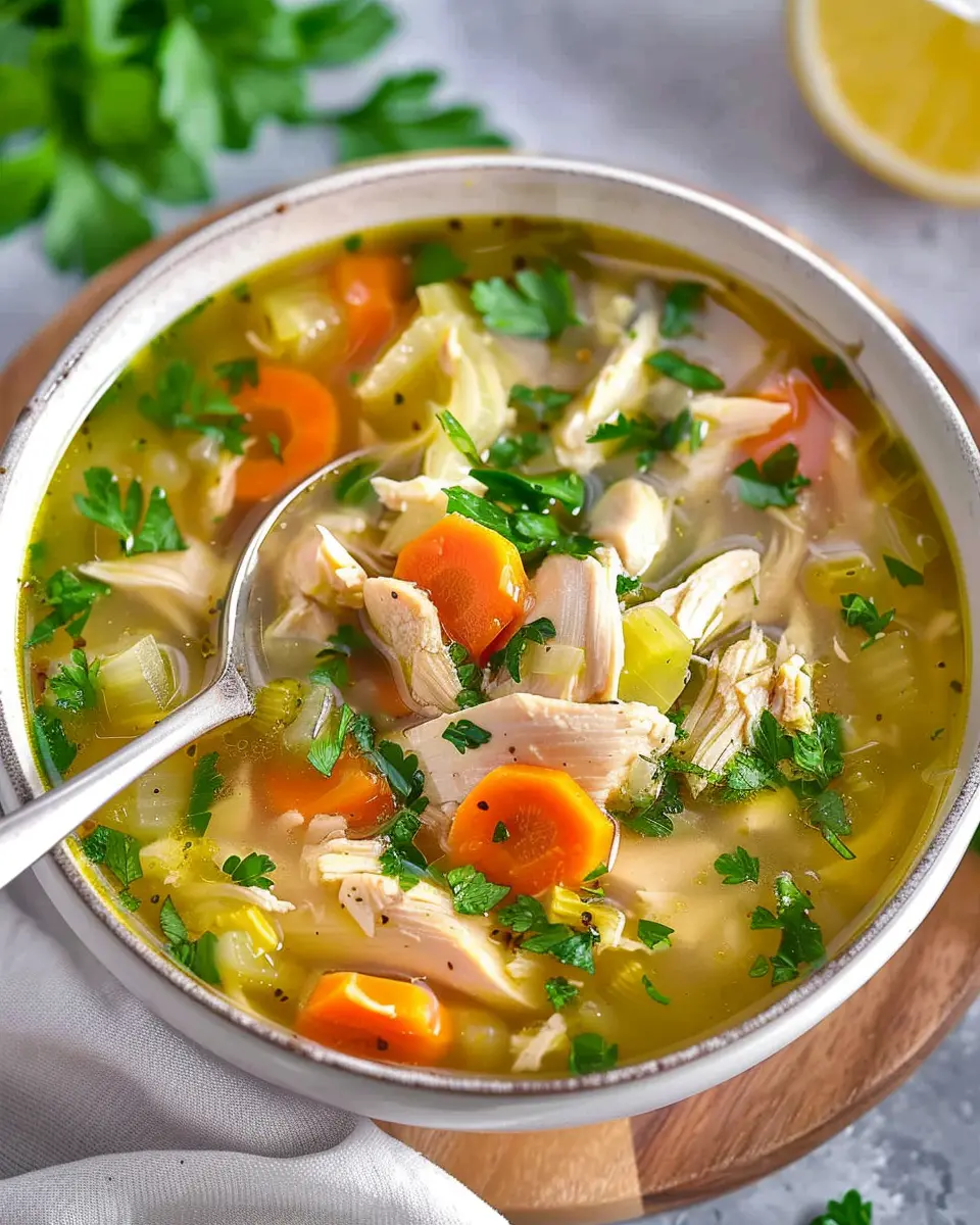 Chopped Fresh Herbs: Garnish your soup with fresh herbs like parsley, cilantro, or dill for a refreshing pop of flavor that complements the chicken beautifully.