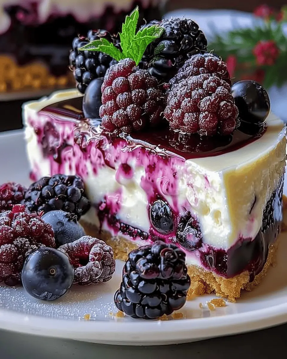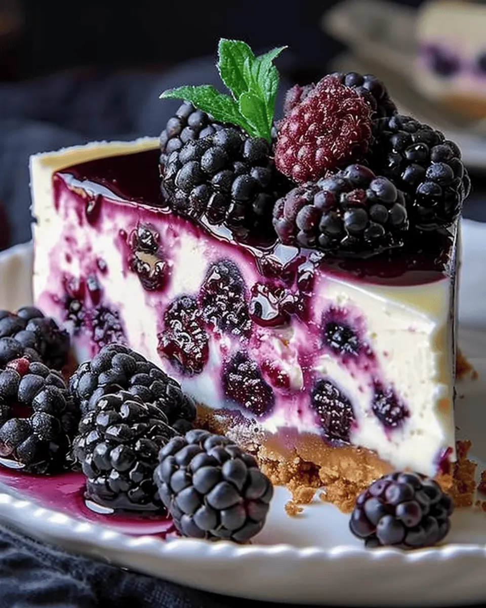 In summary, the Elegant White Chocolate and Blackberry Dream Cheesecake is not just a dessert; it’s a celebration of flavor that can elevate any occasion. Picture this: a rich, creamy cheesecake, harmoniously blended with velvety white chocolate and tart blackberries, all resting on a buttery crust. This recipe is perfect for impressing guests or treating yourself after a long week.