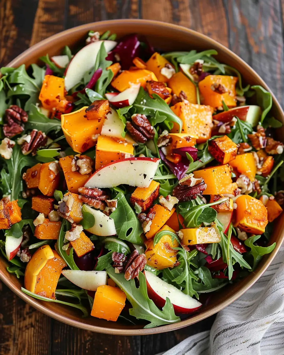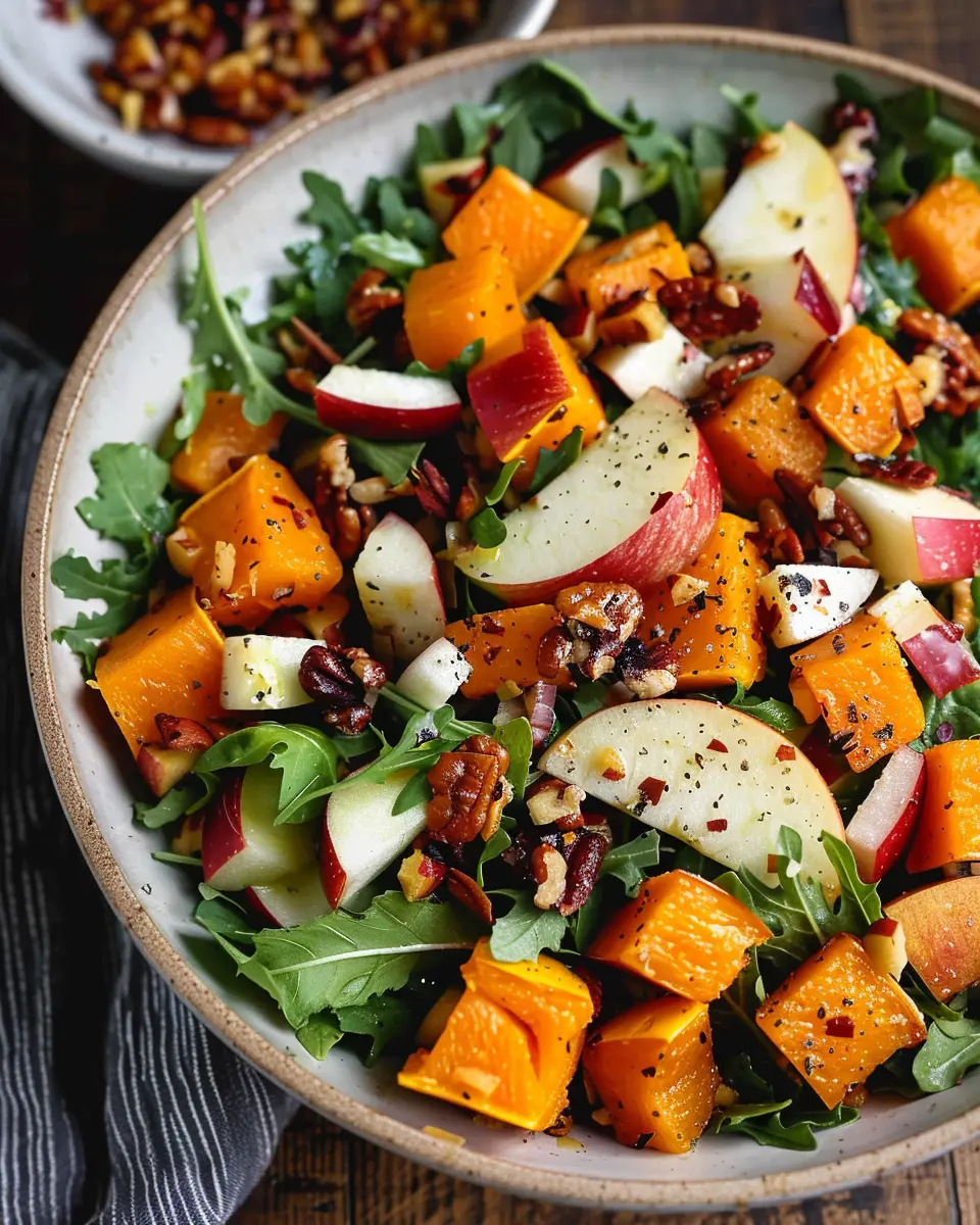 A delightful mix of seasonal flavors featuring roasted butternut squash and crisp apples for a refreshing fall salad.