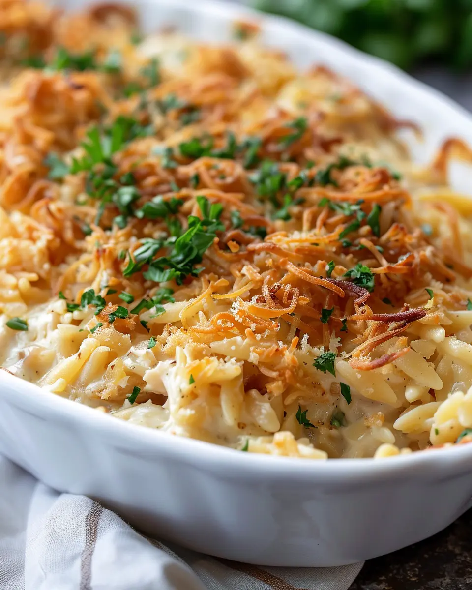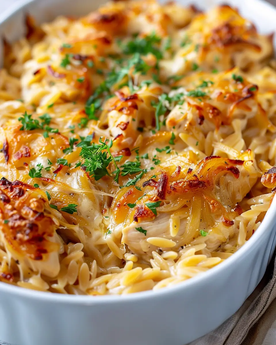 PrintFrench Onion Chicken Orzo Casserole: A Cozy Family Favorite