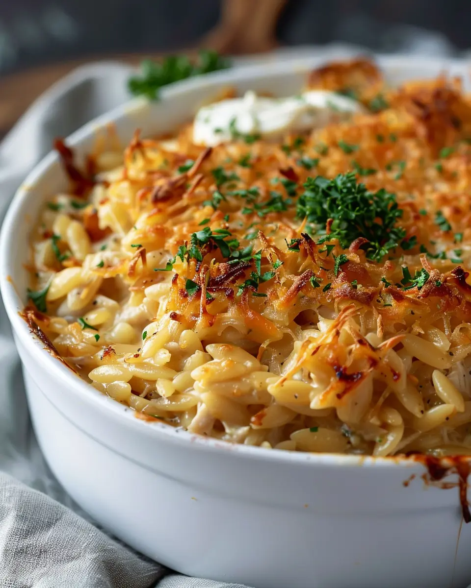 A comforting and flavorful French Onion Chicken Orzo Casserole that’s perfect for family dinners.