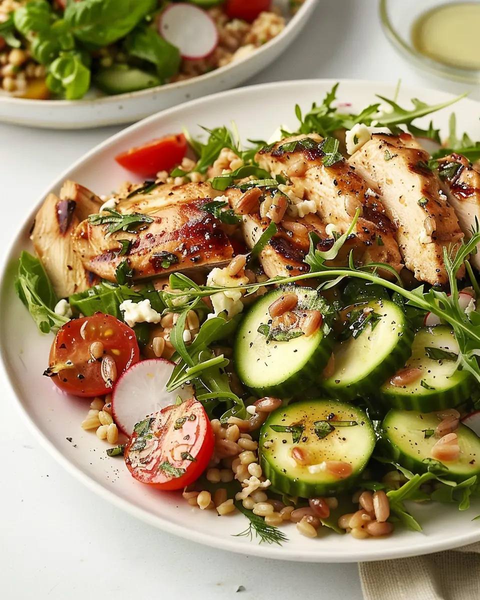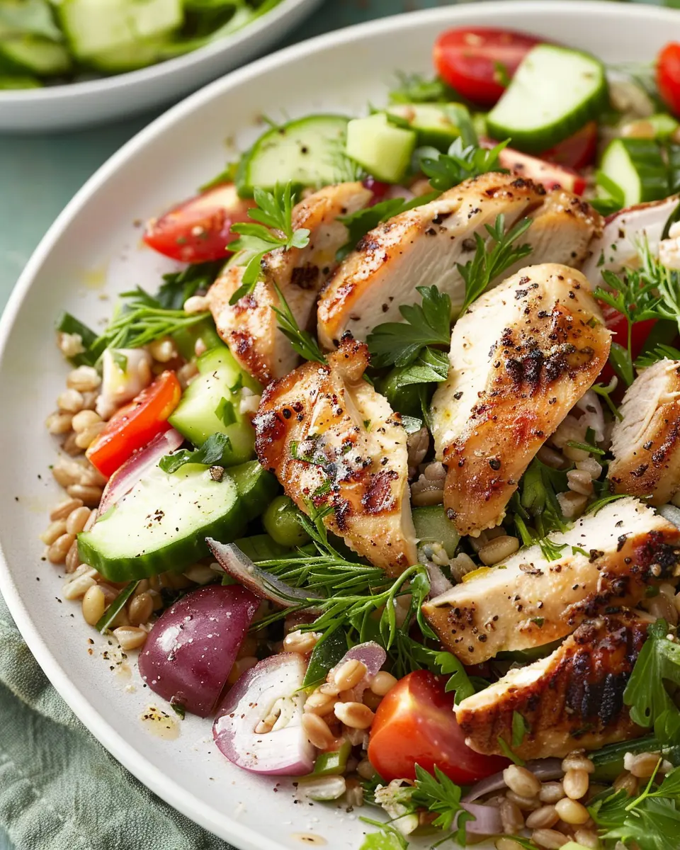 PrintGreek Chicken and Farro Salad: A Healthy and Flavorful Delight