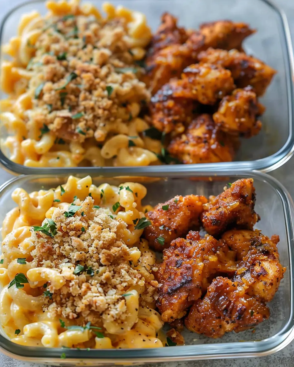 Now that both the chicken and mac and cheese are ready, it’s time to bring it all together.
