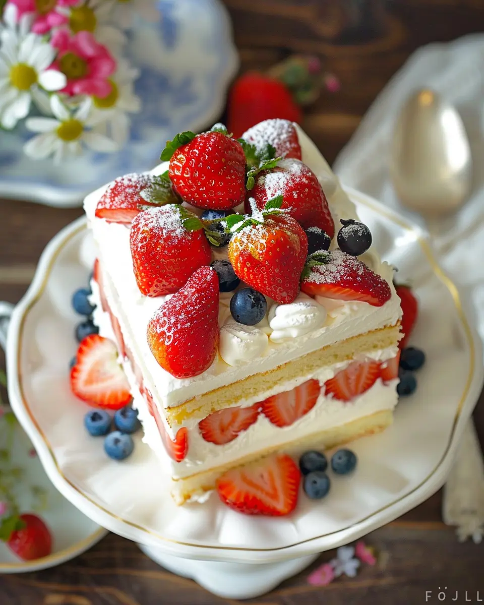 The baking itself takes roughly 25–30 minutes. Keep an eye on your cake in the oven; it should turn a lovely golden brown. As it bakes, you might find yourself dreaming about those fresh strawberries and fluffy cream!