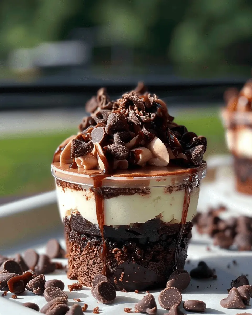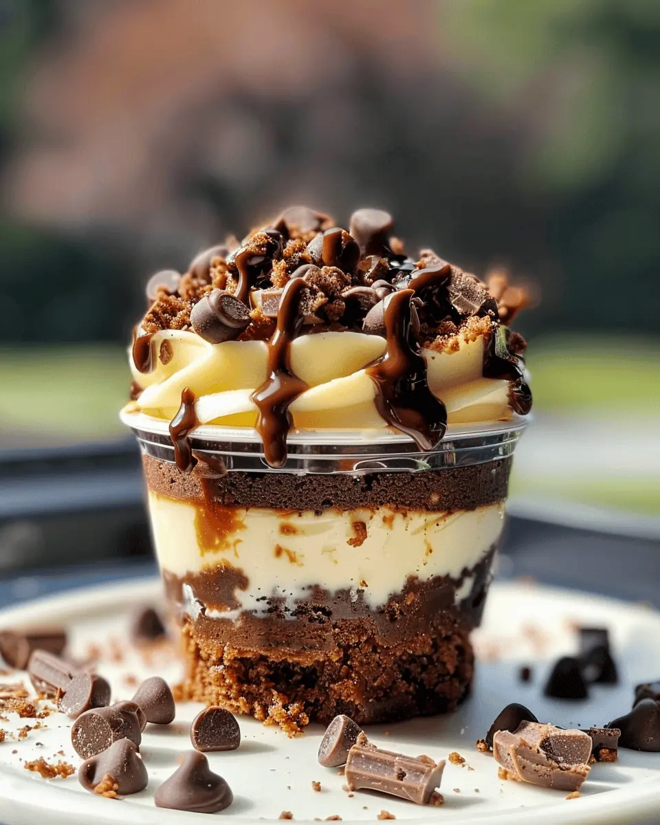 - Layer It Up: Start with a layer of brownie crumbles at the bottom of each cup, then add a generous scoop of the cheesecake filling. Repeat the layers until your cups are filled to the brim, leaving a bit of space for toppings.