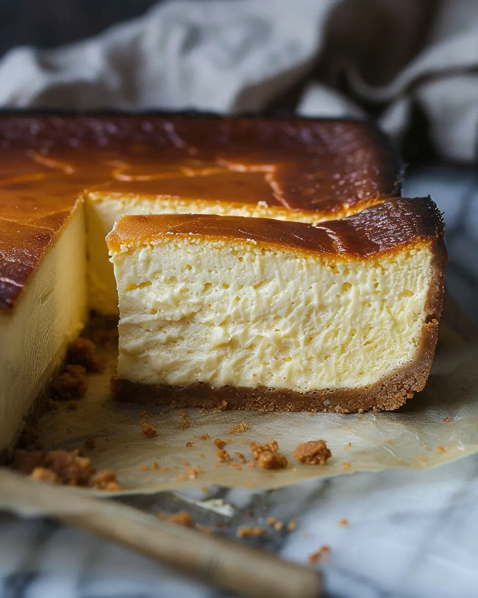 Indulge in the creamy delights of a Loaf Pan Basque Cheesecake, the perfect dessert for any occasion.