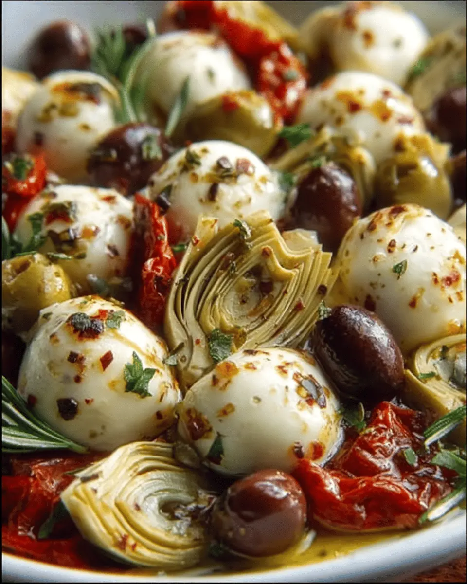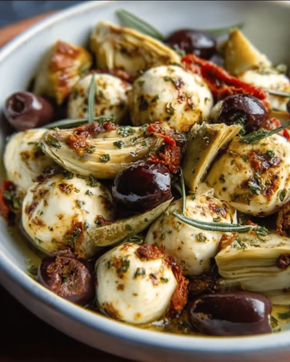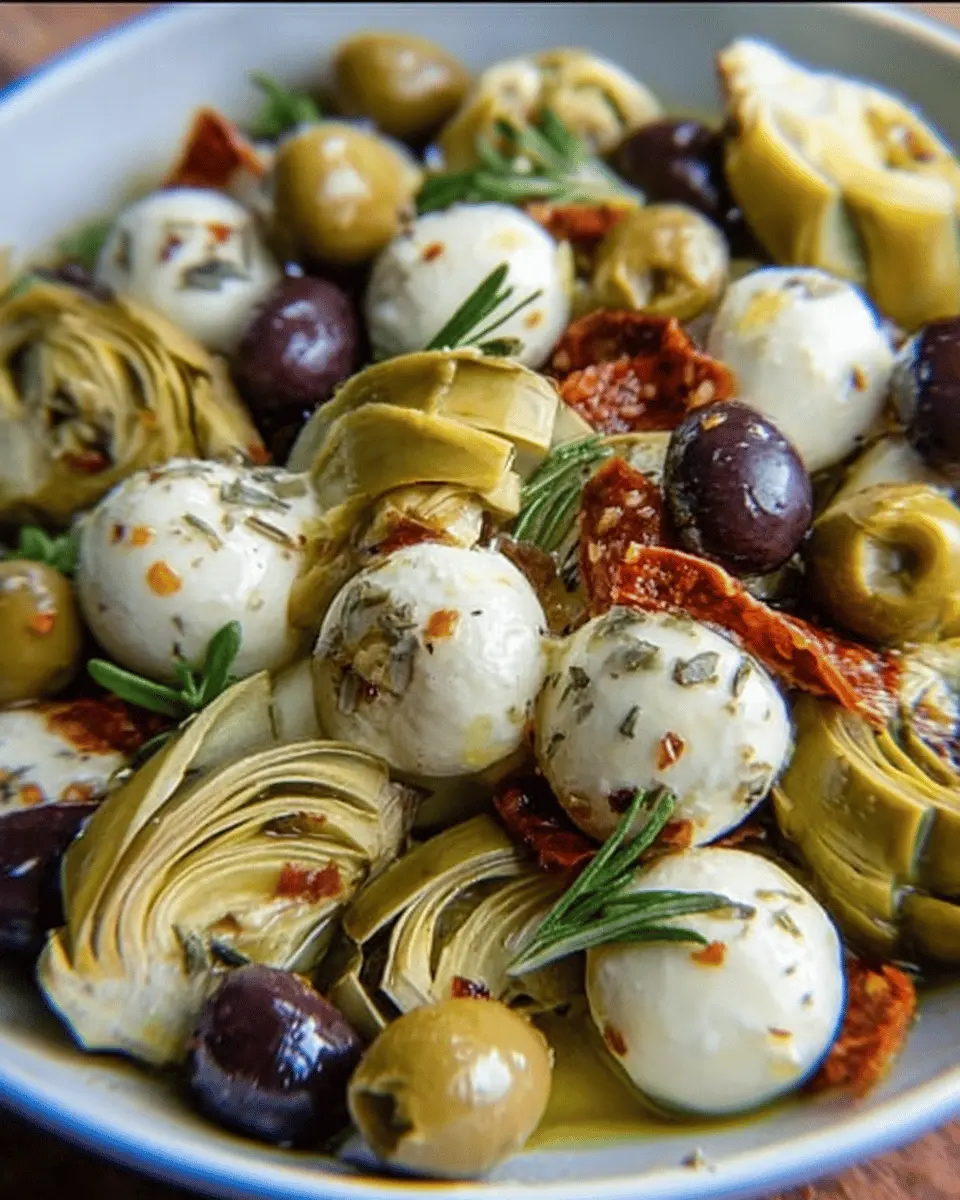 PrintMarinated Mozzarella Balls with Artichokes and Olives: Easy Delight