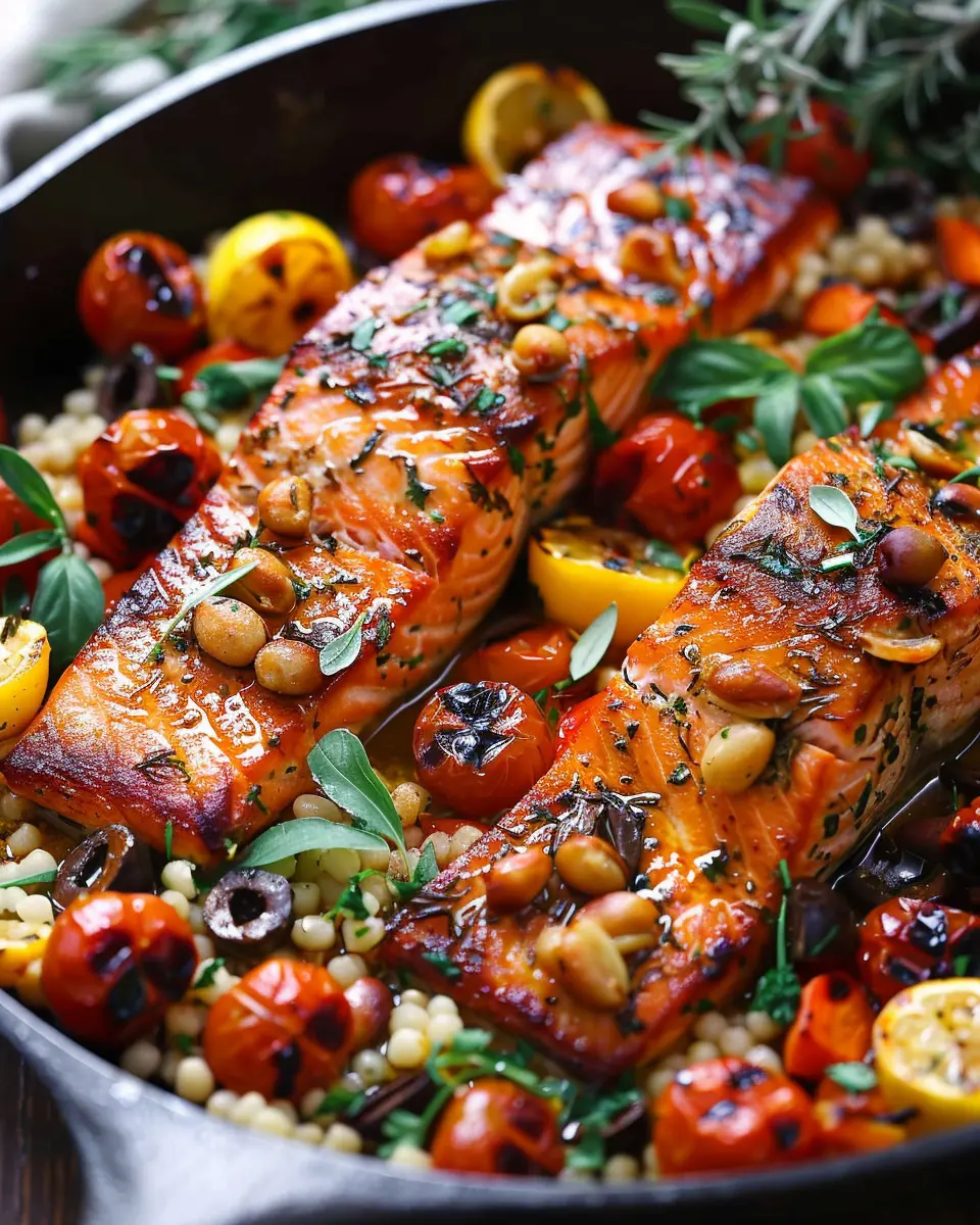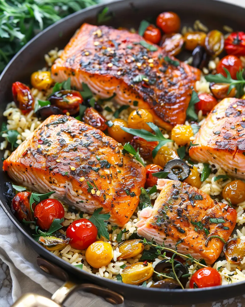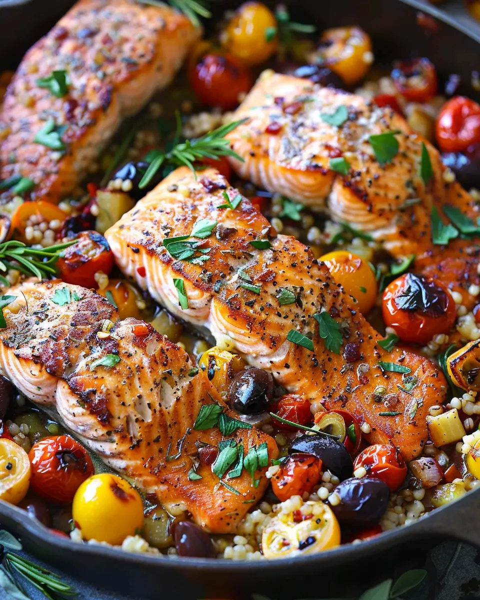This Mediterranean salmon dish is a quick and delicious one-pan meal that can be made in just 30 minutes, perfect for busy weeknights.