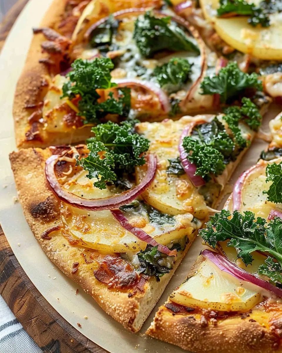 Have you ever thought about flipping the traditional pizza toppings on their head? Enter the Potato Red Onion Kale Pizza. This delightful combination might just revolutionize your idea of what pizza can be. Potatoes offer a creamy, savory go that complements the mild bite of red onions and the earthy flavor of kale. Moreover, potatoes are fantastic pizza toppings because they bring a wonderful texture, soaking up all the glorious flavors while contributing to a satisfying bite.