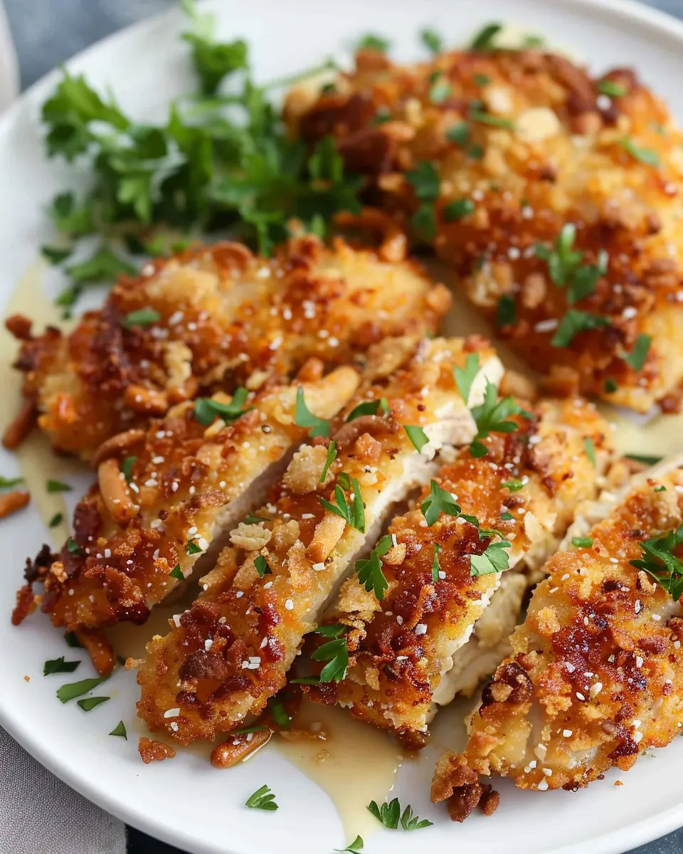 It’s all about layering those flavors! Chicken breasts coated in a crunchy pretzel crust not only provide a satisfying crunch but also a unique flavor profile that elevates this dish.
