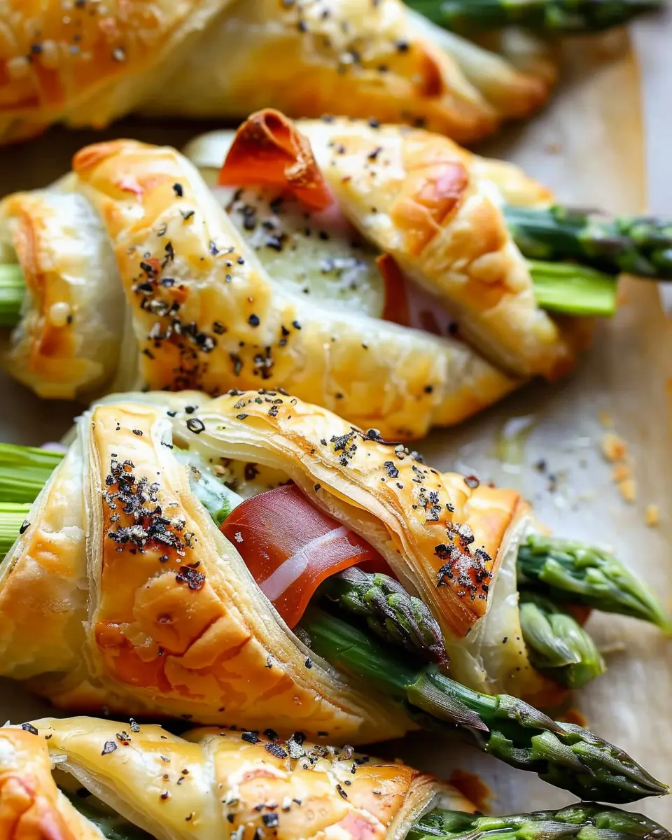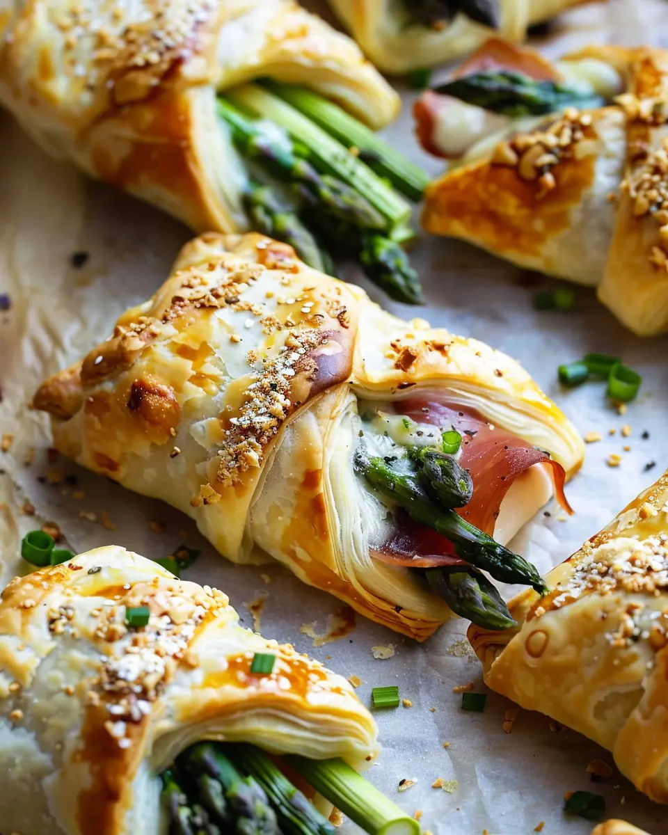 Discover the perfect blend of savory prosciutto and crisp asparagus wrapped in flaky puff pastry for an easy yet elegant appetizer.