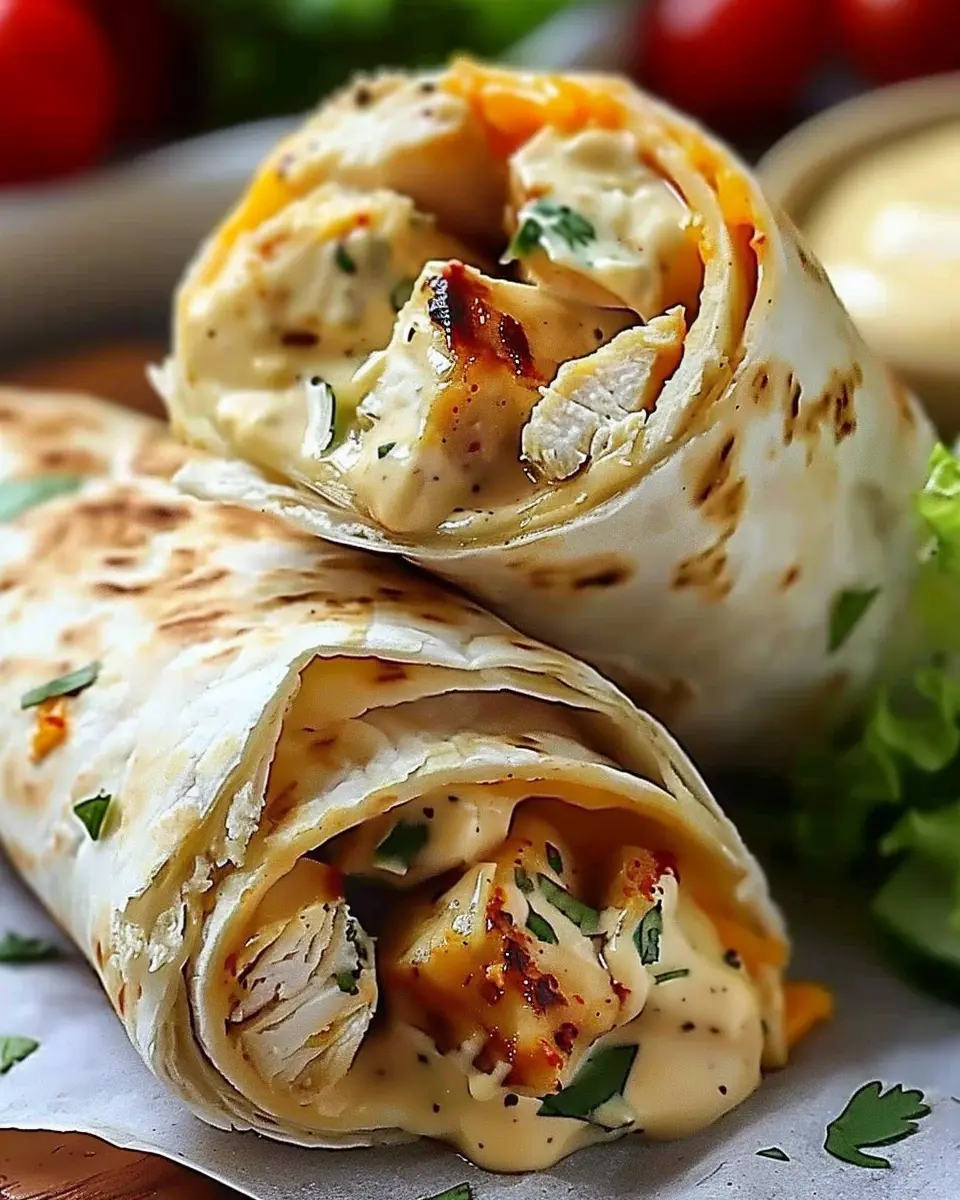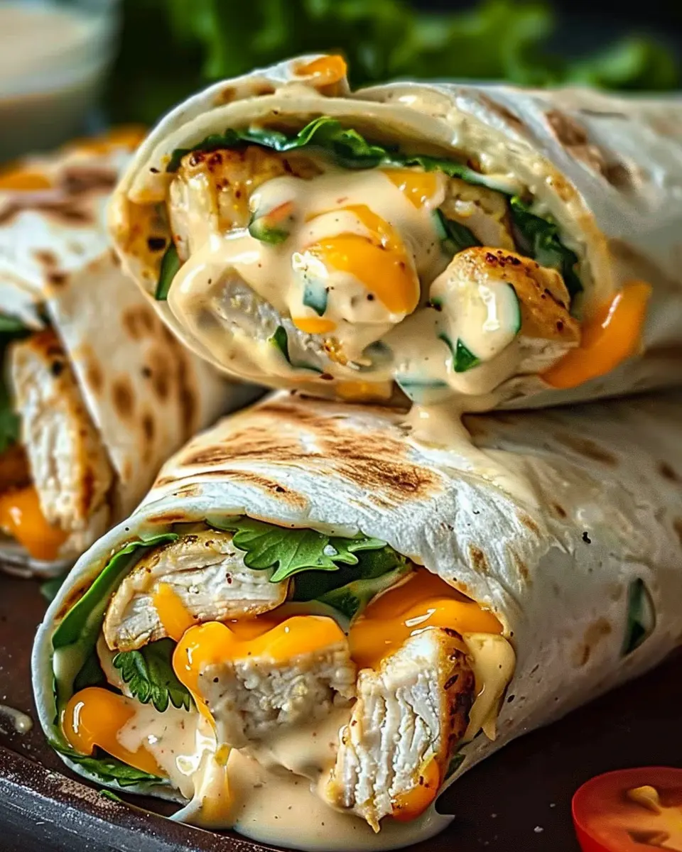 A delicious and easy recipe for quick cheesy chicken wraps that are perfect for dinner.