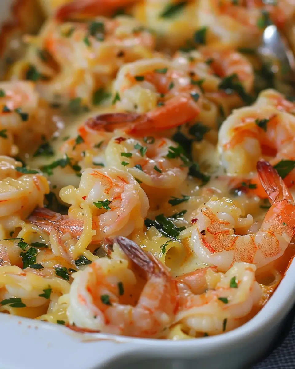 A delightful combination of shrimp and pasta, baked to perfection with rich flavors.