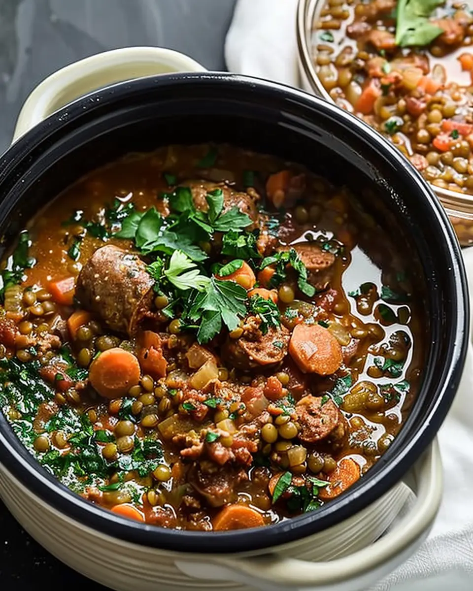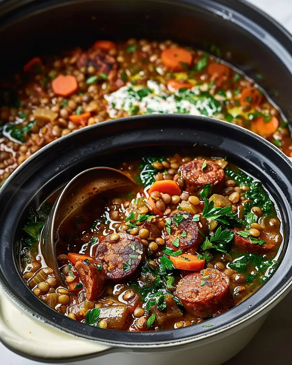 PrintSlow Cooker Sausage and Lentil Stew: Easy, Hearty Comfort Food
