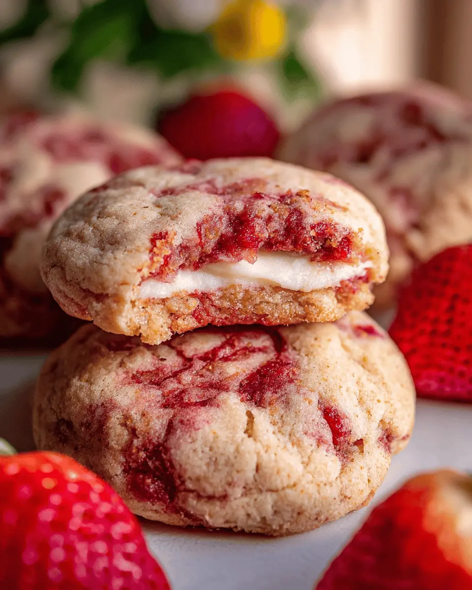 PrintStrawberry Cheesecake Cookies: Indulgent Treats to Satisfy Cravings