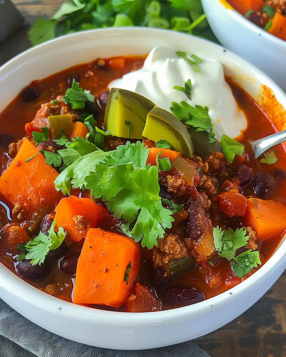 Transform your Sweet Potato Chili Recipe into a flavor-packed delight with the right toppings. Here are some scrumptious options to consider: