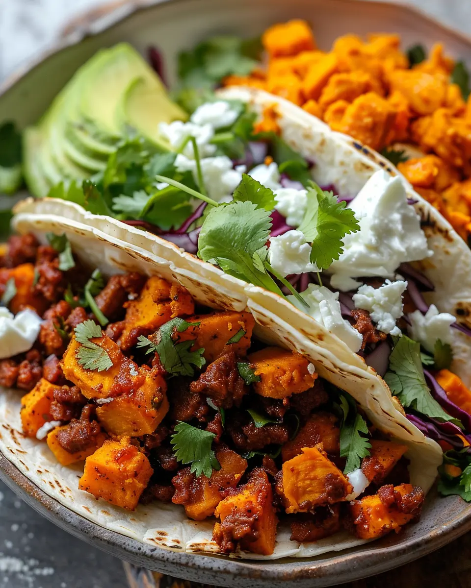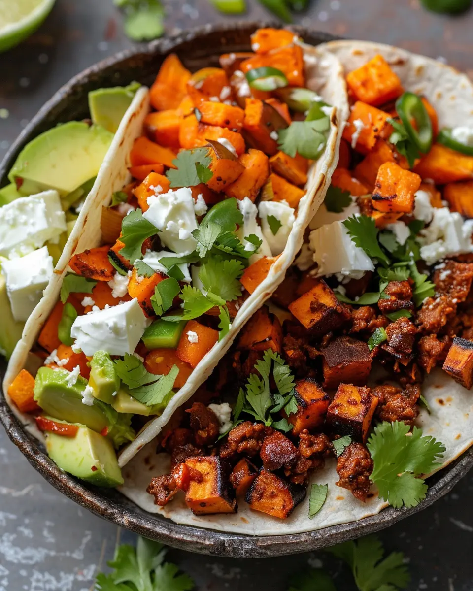 To make your sweet potato tacos vegetarian-friendly, simply remove any meat and use plant-based proteins. Options like black beans, lentils, or seasoned tofu can add both flavor and protein to your tacos. Want an extra crunch? Include roasted chickpeas! The key is to pack in the flavor with spices and fresh ingredients.