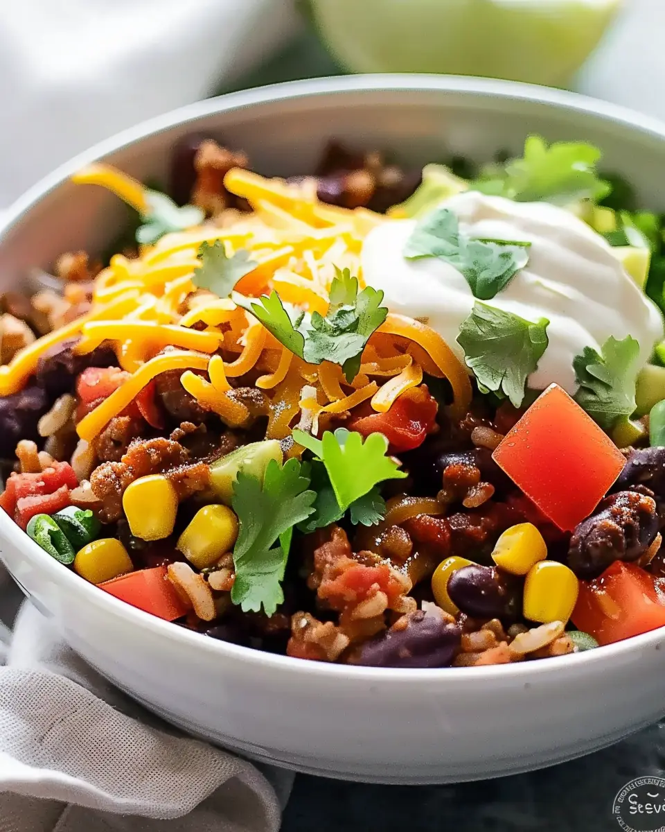 Dig In: Grab a fork, and enjoy your vibrant and satisfying Taco Rice Bowl!