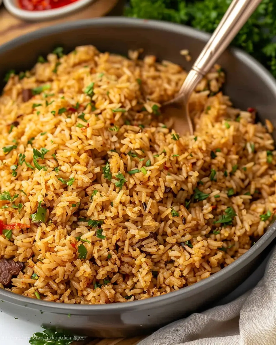This flavorful rice dish has a low fat content of around 2 grams per serving, which is primarily from the cooking oils used. That’s great news if you’re aiming for a healthier diet while still enjoying robust flavors!