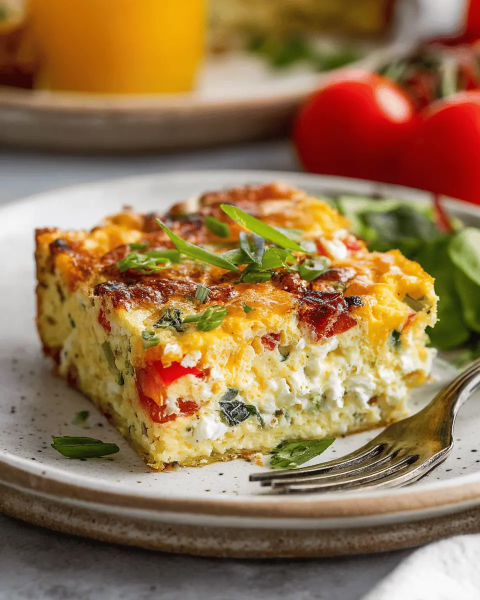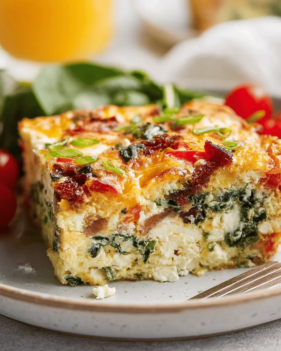 A delicious and nutritious veggie-packed egg bake featuring cottage cheese and turkey bacon, perfect for a healthy breakfast or brunch!