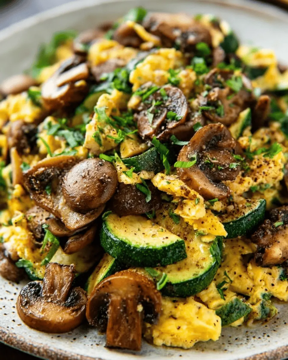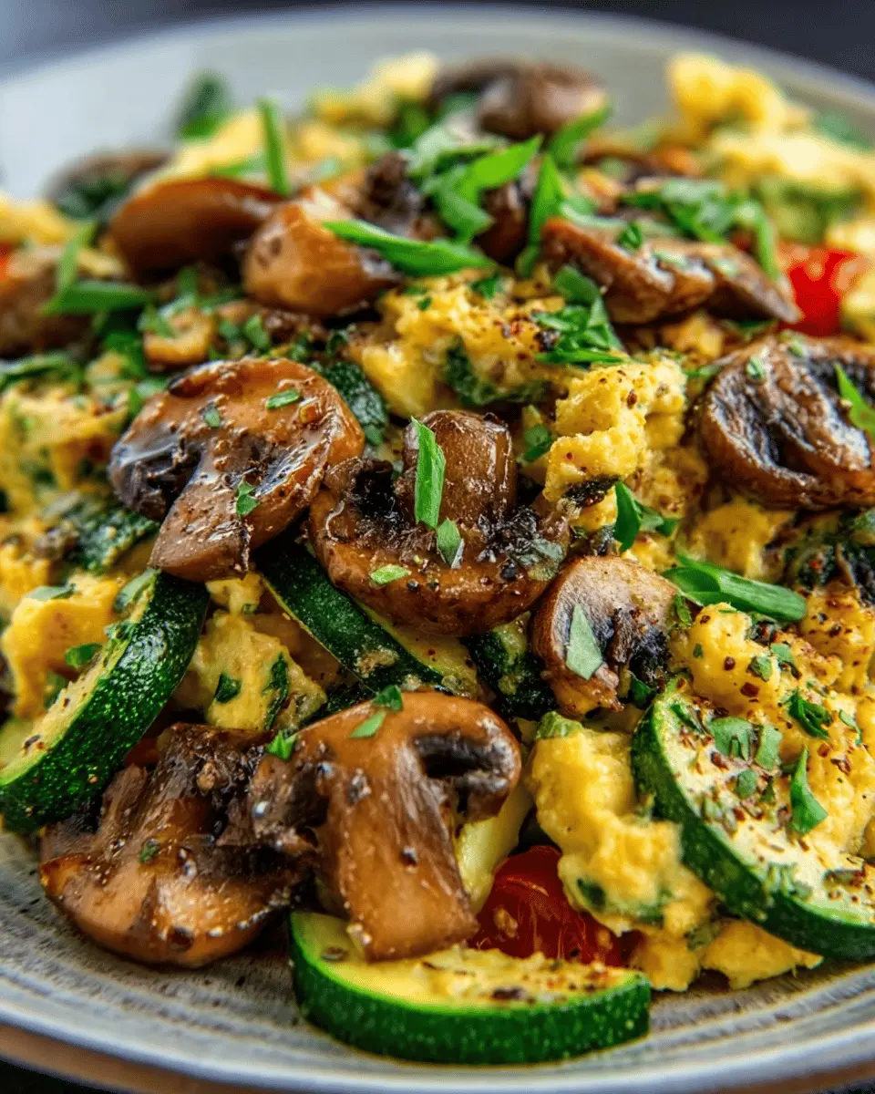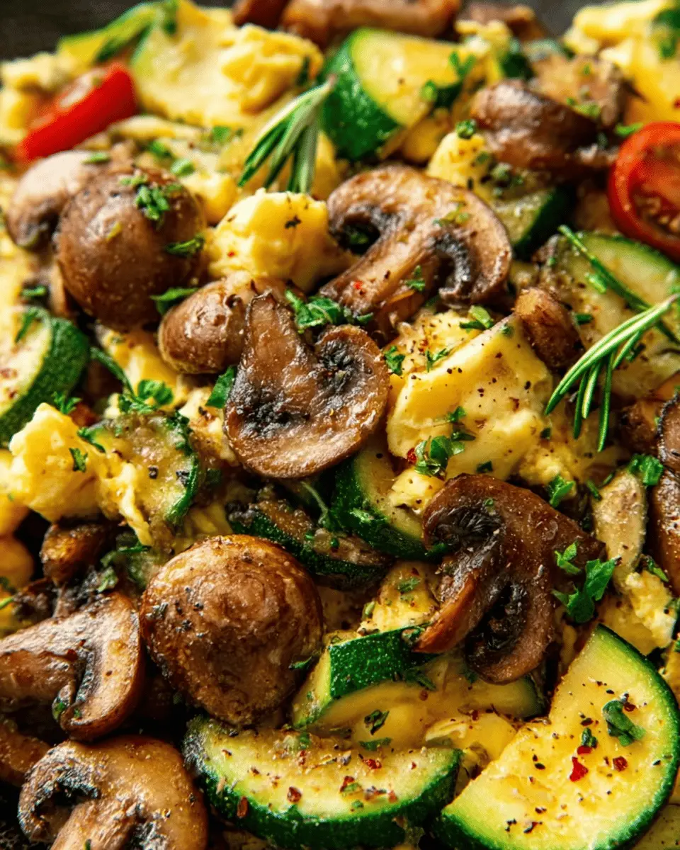 A healthy and delicious Veggie-Packed Zucchini and Mushroom Scramble perfect for breakfast!